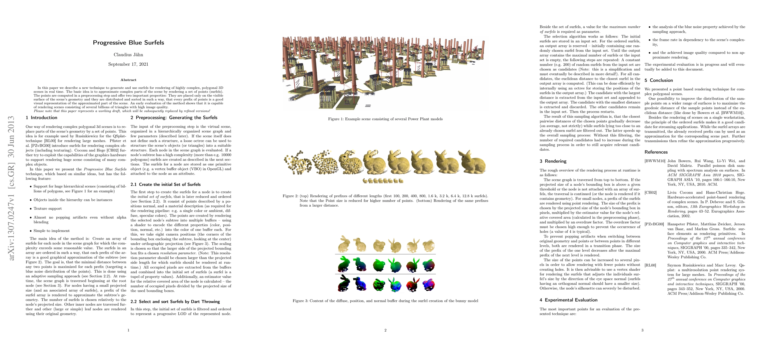 In this paper we describe a new technique to generate and use surfels for rendering of highly complex, polygonal 3D scenes in real time. The basic idea is to approximate complex parts of the scene by rendering a set of points (surfels). The points are computed in a preprocessing step and offer two important properties: They are placed only on the visible surface of the scene's geometry and they are distributed and sorted in such a way, that every prefix of points is a good visual representation of the approximated part of the scene. An early evaluation of the method shows that it is capable of rendering scenes consisting of several billions of triangles with high image quality.