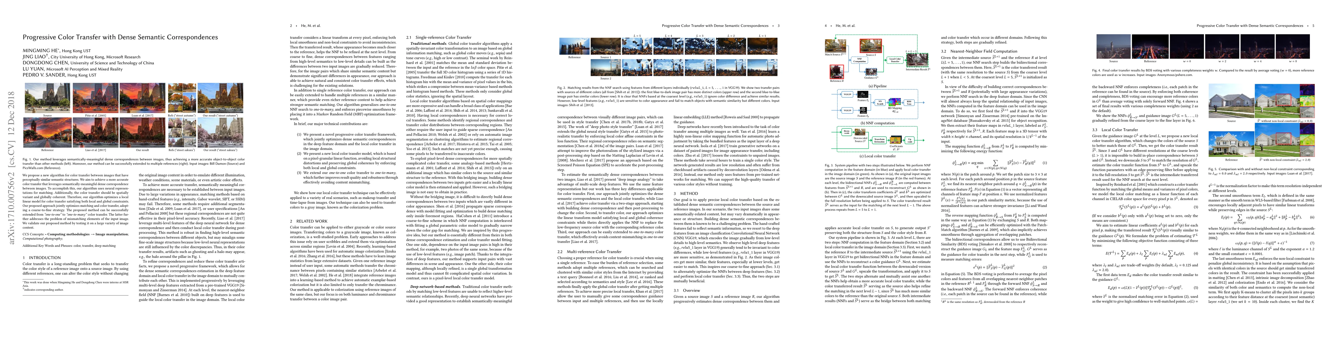 A new algorithm for color transfer between images with similar semantic structures is proposed, leveraging neural representations for matching and optimizing a local linear model that satisfies both local and global constraints.