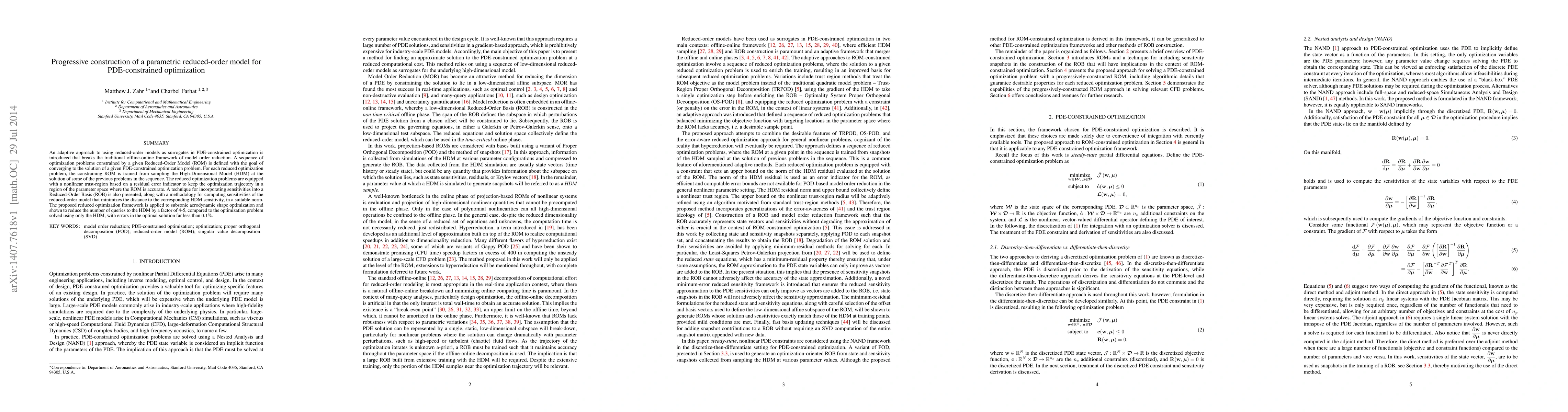 This paper introduces an adaptive reduced-order model (ROM) approach for PDE-constrained optimization that progressively constructs the ROM from previous optimization solutions, reducing the number of high-dimensional model queries by a factor of 4-5 while maintaining solution accuracy. The method incorporates sensitivities into the ROM and ensures optimization accuracy through a nonlinear trust-region.
