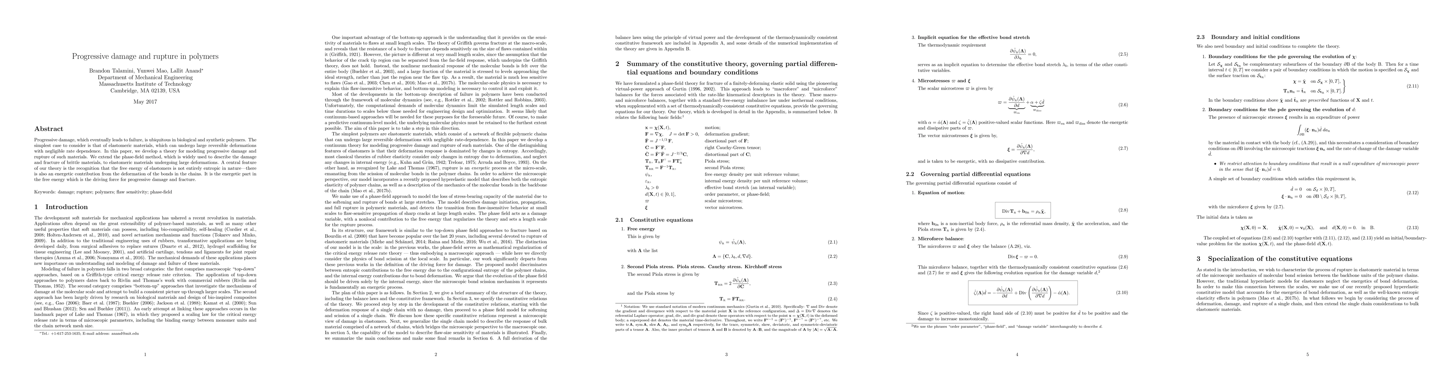 Researchers develop a new theory to model progressive damage and rupture in elastomeric materials, finding that energetic contributions from bond deformation drive the process, rather than just entropic forces.
