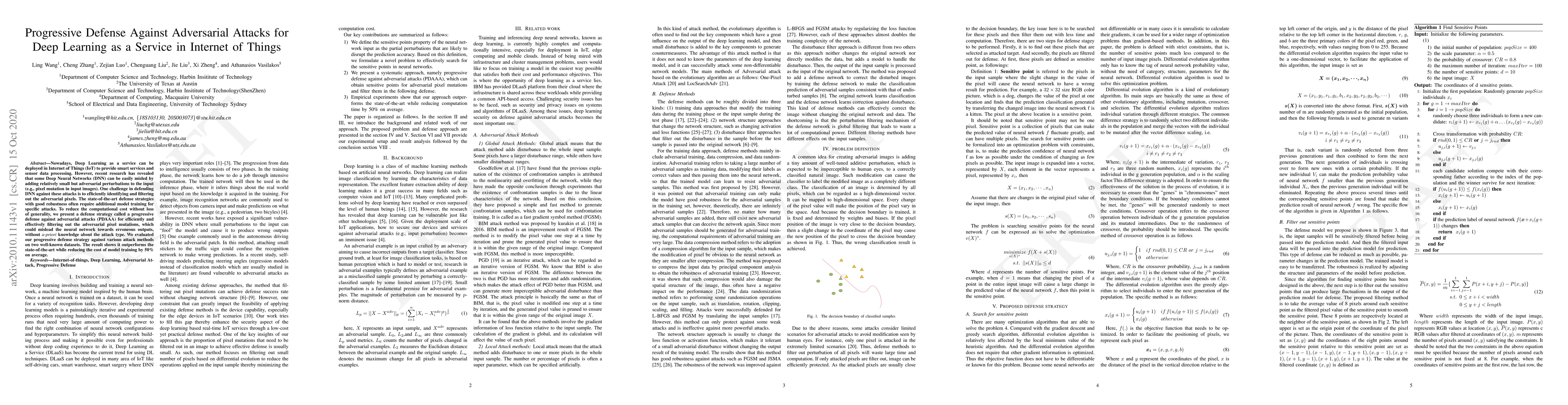 This paper proposes a progressive defense strategy (PDAAA) for deep learning deployed in IoT to counteract adversarial attacks efficiently, without requiring additional model training for specific attacks. The method successfully filters out adversarial pixels, reducing computational costs by 50% on average compared to state-of-the-art defenses.