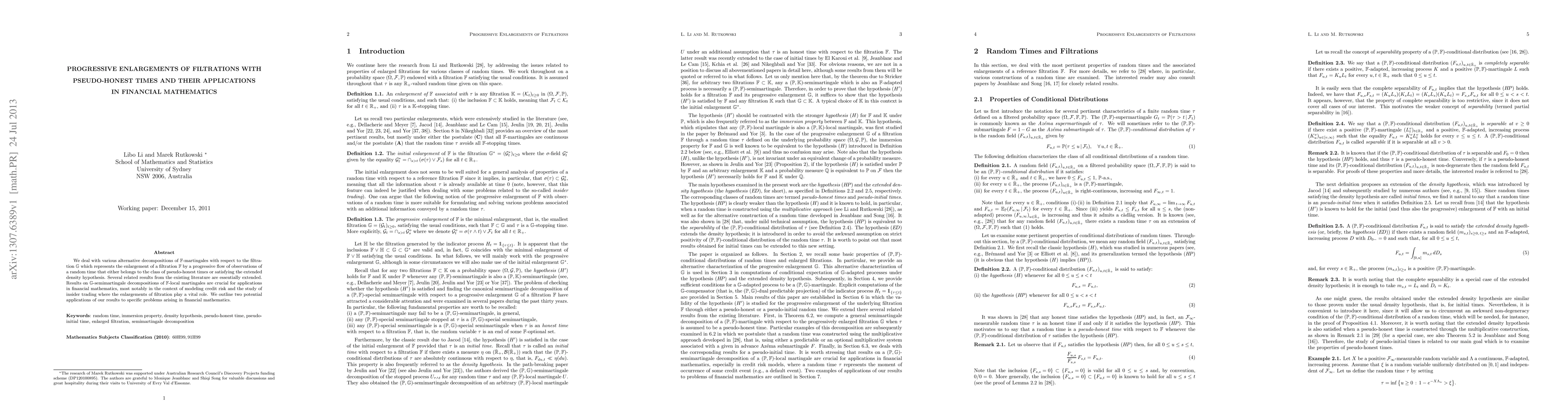 This paper explores alternative decompositions of F-martingales with respect to filtration G, which enlarges F through a progressive flow of observations of pseudo-honest times or times satisfying the extended density hypothesis. The results are crucial for financial mathematics, particularly in modeling credit risk and insider trading, where filtration enlargements are vital.