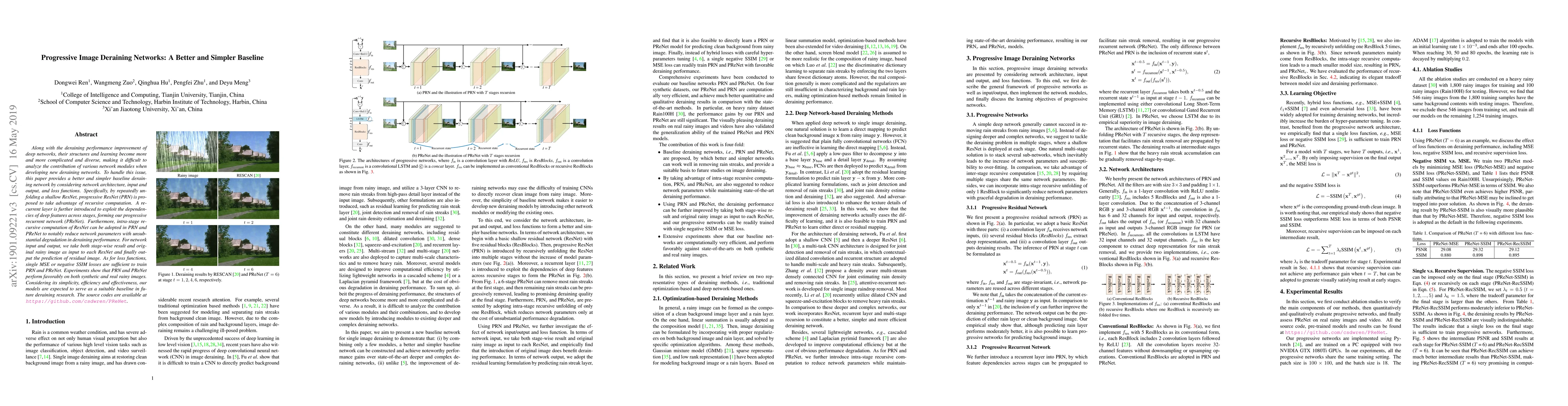 This paper introduces a simpler and more effective baseline for image deraining using progressive recurrent networks (PReNet), which leverages recursive computation and recurrent layers to exploit feature dependencies. The proposed models, PRN and PReNet, achieve competitive performance with fewer parameters, using straightforward loss functions and combining stage-wise results and original rainy images as inputs.