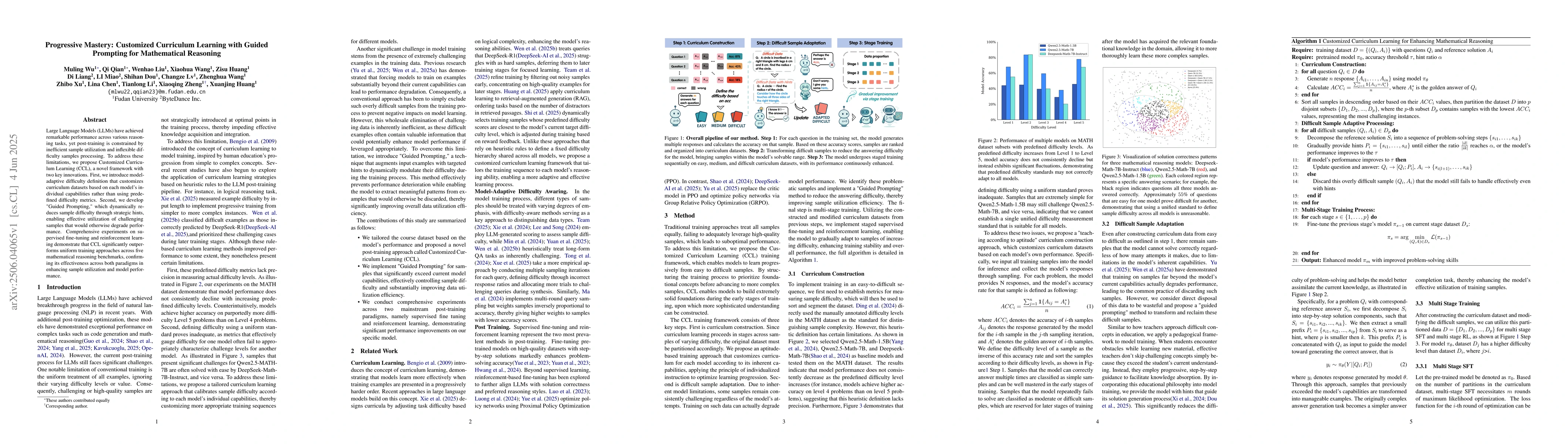 A new framework called Customized Curriculum Learning enhances large language models by dynamically adjusting difficulty and providing strategic hints to improve performance on mathematical reasoning tasks.