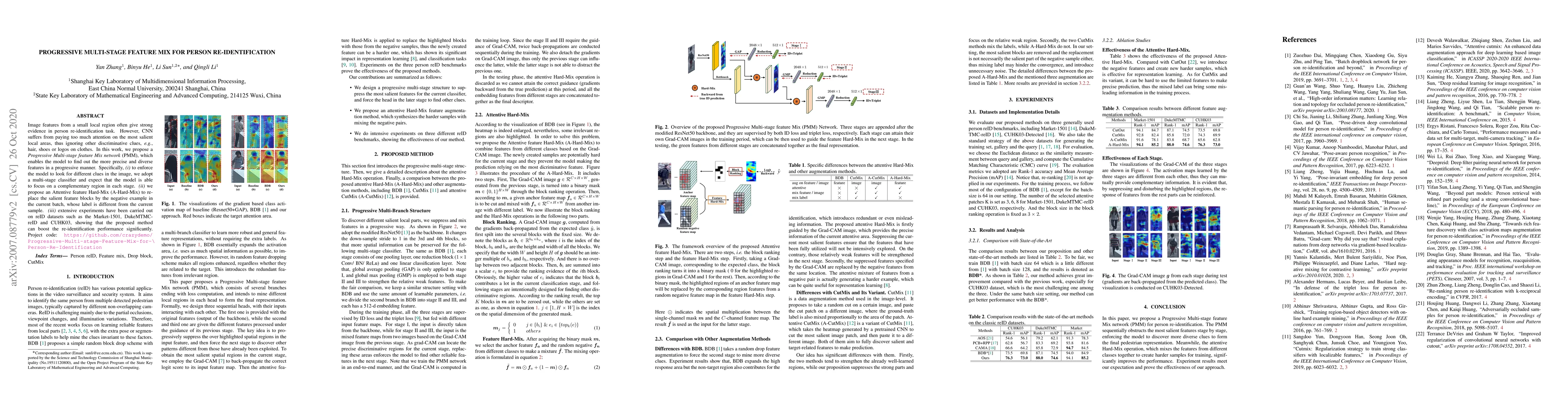 Image features from a small local region often give strong evidence in person re-identification task. However, CNN suffers from paying too much attention on the most salient local areas, thus ignoring other discriminative clues, e.g., hair, shoes or logos on clothes. %BDB proposes to randomly drop one block in a batch to enlarge the high response areas. Although BDB has achieved remarkable results, there still room for improvement. In this work, we propose a Progressive Multi-stage feature Mix network (PMM), which enables the model to find out the more precise and diverse features in a progressive manner. Specifically, 1. to enforce the model to look for different clues in the image, we adopt a multi-stage classifier and expect that the model is able to focus on a complementary region in each stage. 2. we propose an Attentive feature Hard-Mix (A-Hard-Mix) to replace the salient feature blocks by the negative example in the current batch, whose label is different from the current sample. 3. extensive experiments have been carried out on reID datasets such as the Market-1501, DukeMTMC-reID and CUHK03, showing that the proposed method can boost the re-identification performance significantly.