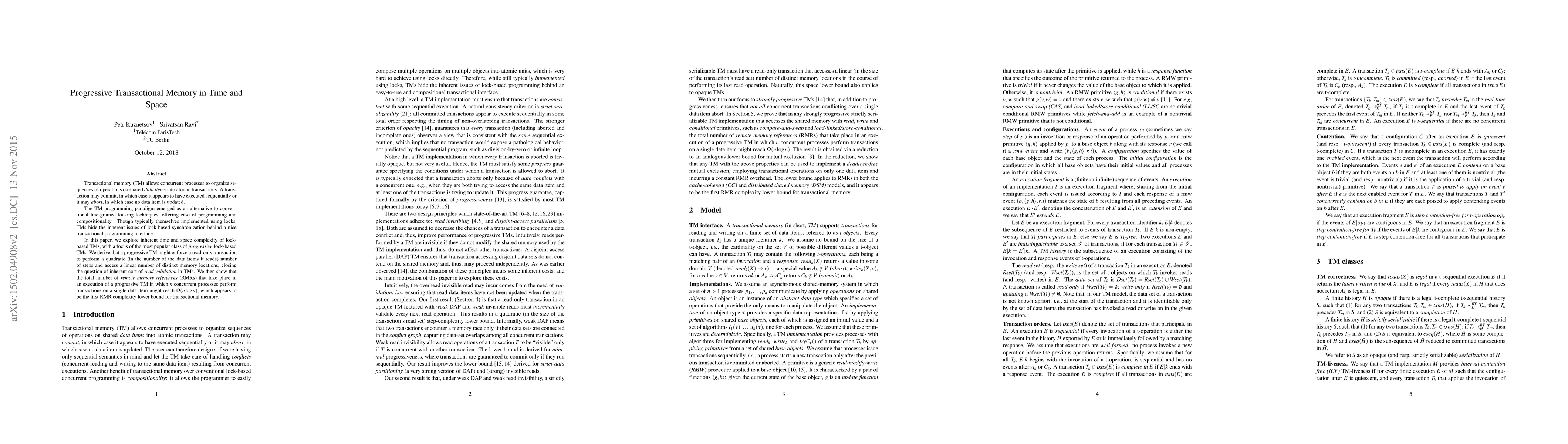 This paper investigates the time and space complexity of progressive lock-based transactional memory (TM), revealing that read-only transactions can incur quadratic steps and linear memory access. It also establishes a lower bound of $\Omega(n \log n)$ for remote memory references in progressive TMs with $n$ concurrent processes.