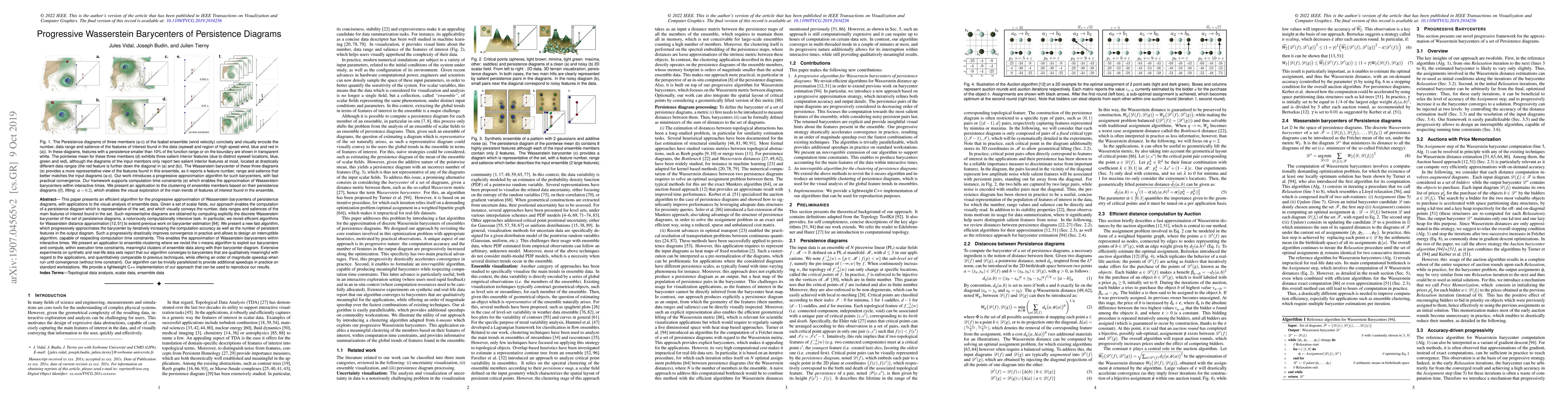 This paper introduces a fast, progressive algorithm for computing Wasserstein barycenters of persistence diagrams, enabling efficient visual analysis of ensemble data. The method iteratively improves accuracy and feature representation, allowing for interactive computation times and meaningful clustering of ensemble data.