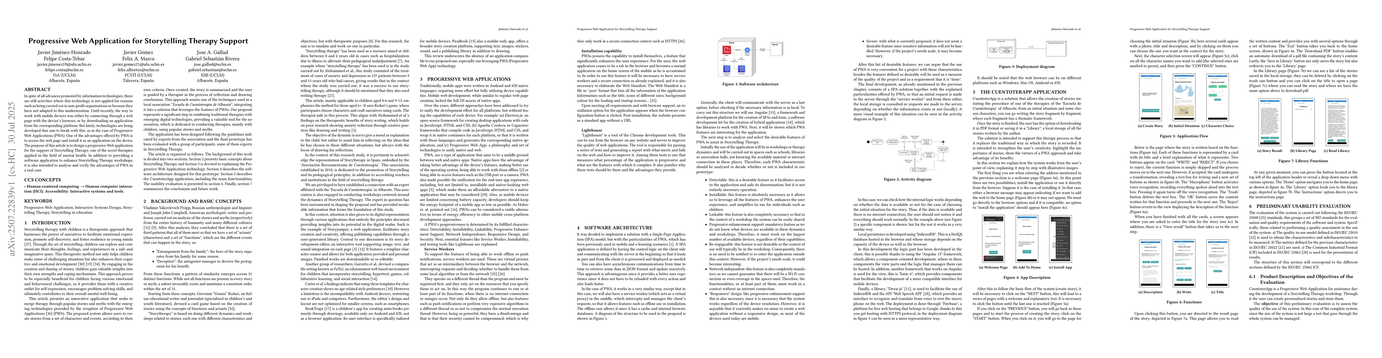 This work stands out by applying PWA technology to Storytelling Therapy, an area not extensively explored in existing research, and by validating the application with real end-users, providing valuable insights for future improvements.