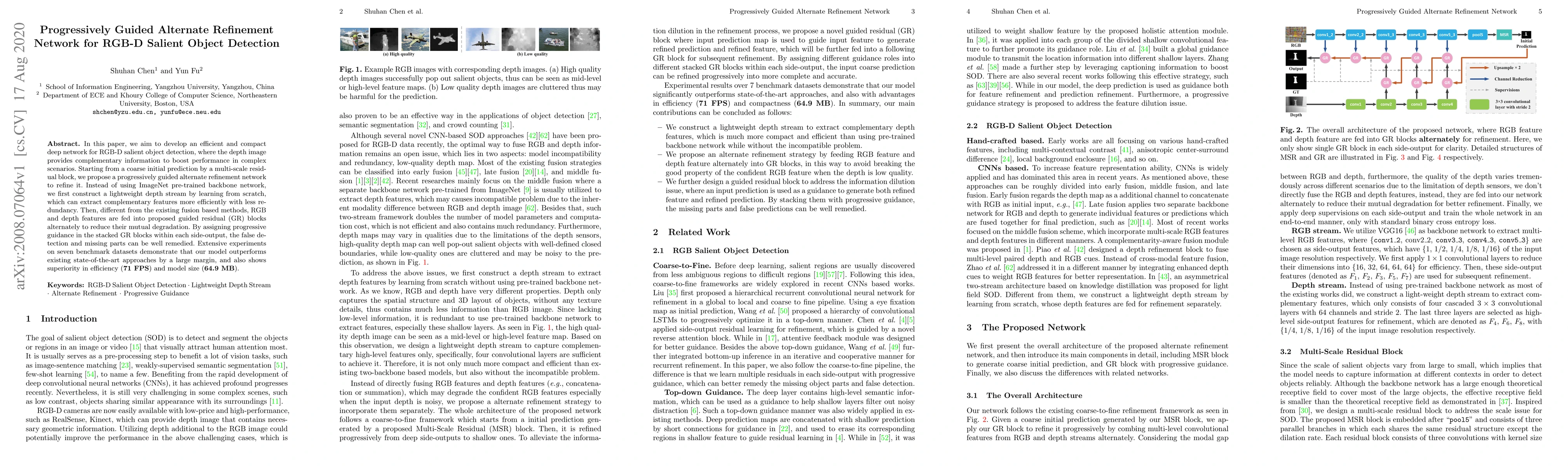 This paper introduces a progressively guided alternate refinement network for RGB-D salient object detection, utilizing a lightweight depth stream learned from scratch to extract complementary features. The proposed guided residual blocks alternately refine RGB and depth features, achieving superior performance, efficiency, and model size compared to existing methods.