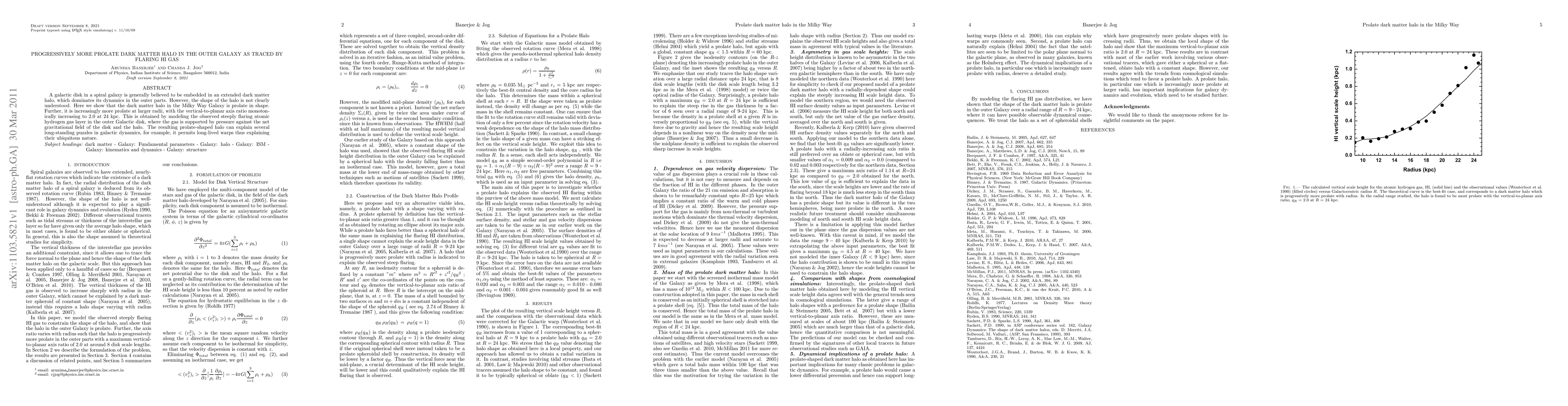 This paper demonstrates that the dark matter halo of the Milky Way is progressively more prolate at larger radii, using the flaring atomic hydrogen gas as a tracer. The findings resolve long-standing galactic dynamics puzzles, such as explaining the ubiquitous presence of long-lived warps.