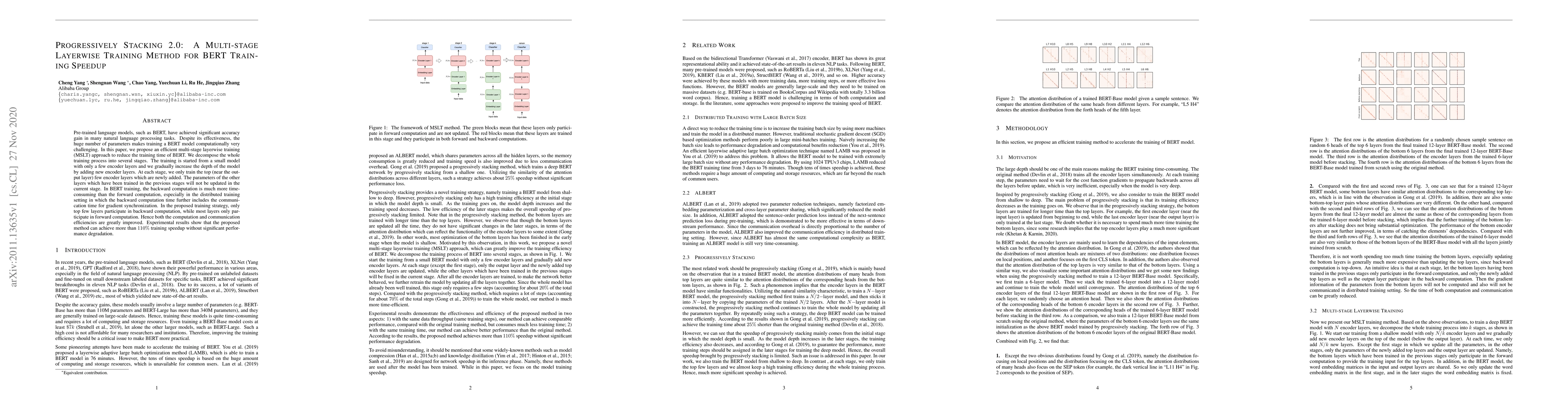 This paper proposes a multi-stage layerwise training method called MSLT to accelerate BERT training. By starting with a small model and progressively adding layers, only the top layers undergo backward computation, significantly improving both computation and communication efficiency, resulting in over 110% speedup with minimal performance loss.