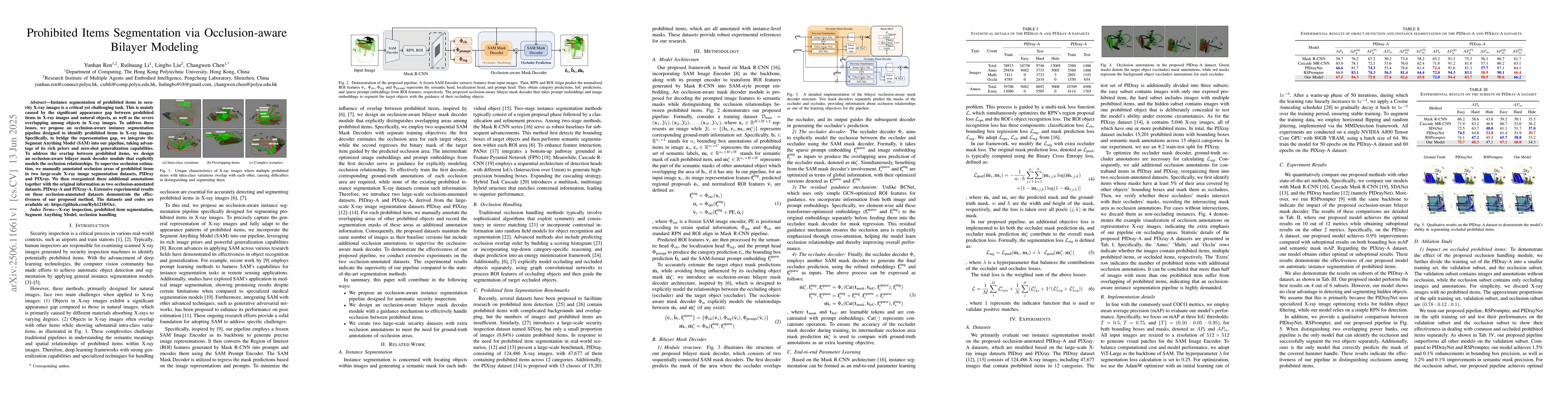 Instance segmentation of prohibited items in security X-ray images is a critical yet challenging task. This is mainly caused by the significant appearance gap between prohibited items in X-ray images and natural objects, as well as the severe overlapping among objects in X-ray images. To address these issues, we propose an occlusion-aware instance segmentation pipeline designed to identify prohibited items in X-ray images. Specifically, to bridge the representation gap, we integrate the Segment Anything Model (SAM) into our pipeline, taking advantage of its rich priors and zero-shot generalization capabilities. To address the overlap between prohibited items, we design an occlusion-aware bilayer mask decoder module that explicitly models the occlusion relationships. To supervise occlusion estimation, we manually annotated occlusion areas of prohibited items in two large-scale X-ray image segmentation datasets, PIDray and PIXray. We then reorganized these additional annotations together with the original information as two occlusion-annotated datasets, PIDray-A and PIXray-A. Extensive experimental results on these occlusion-annotated datasets demonstrate the effectiveness of our proposed method. The datasets and codes are available at: https://github.com/Ryh1218/Occ