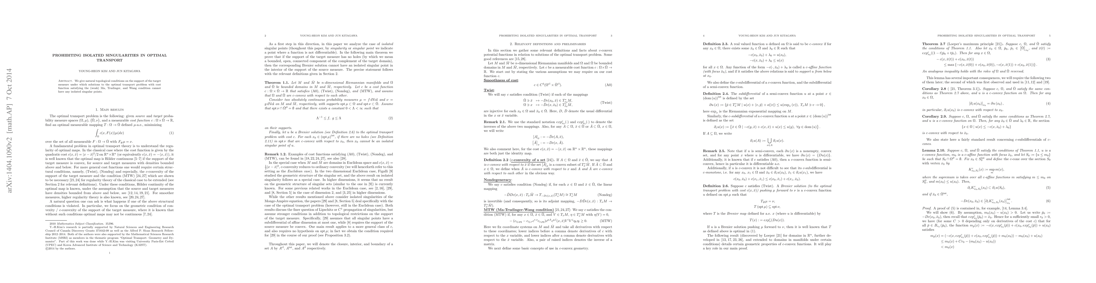 This research paper presents conditions on target measure supports that prevent isolated singular points in optimal transport solutions, given a cost function adhering to the (weak) Ma, Trudinger, and Wang condition.