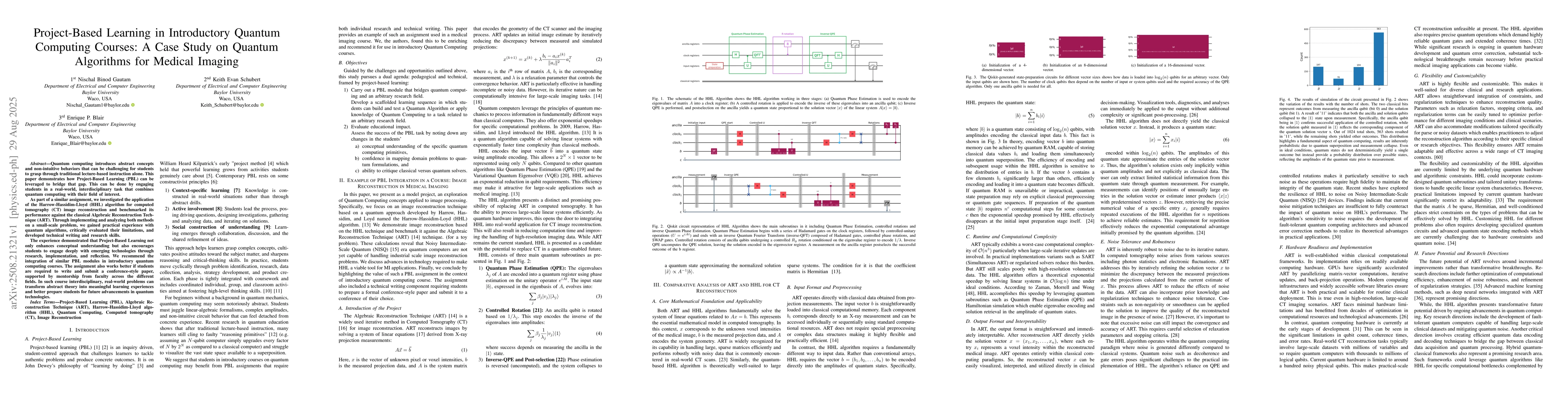 Quantum computing introduces abstract concepts and non-intuitive behaviors that can be challenging for students to grasp through traditional lecture-based instruction alone. This paper demonstrates how Project-Based Learning (PBL) can be leveraged to bridge that gap. This can be done by engaging students in a real-world, interdisciplinary task that combines quantum computing with their field of interest. As part of a similar assignment, we investigated the application of the Harrow-Hassidim-Lloyd (HHL) algorithm for computed tomography (CT) image reconstruction and benchmarked its performance against the classical Algebraic Reconstruction Technique (ART). Through implementing and analyzing both methods on a small-scale problem, we gained practical experience with quantum algorithms, critically evaluated their limitations, and developed technical writing and research skills. The experience demonstrated that Project-Based Learning not only enhances conceptual understanding but also encourages students to engage deeply with emerging technologies through research, implementation, and reflection. We recommend the integration of similar PBL modules in introductory quantum computing courses. The assignment also works better if students are required to write and submit a conference-style paper, supported by mentorship from faculty across the different fields. In such course interdisciplinary, real-world problems can transform abstract theory into meaningful learning experiences and better prepare students for future advancements in quantum technologies.