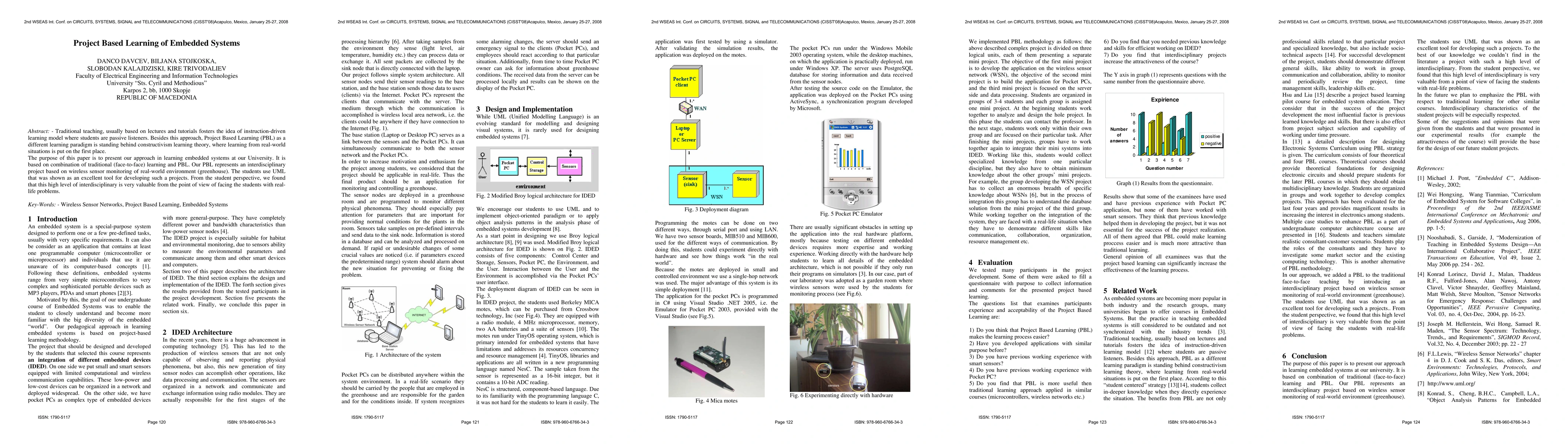 Traditional teaching, usually based on lectures and tutorials fosters the idea of instruction-driven learning model where students are passive listeners. Besides this approach, Project Based Learning (PBL) as a different learning paradigm is standing behind constructivism learning theory, where learning from real-world situations is put on the first place. The purpose of this paper is to present our approach in learning embedded systems at our University. It is based on combination of traditional (face-to-face) learning and PBL. Our PBL represents an interdisciplinary project based on wireless sensor monitoring of real-world environment (greenhouse). The students use UML that was shown as an excellent tool for developing such a projects. From the student perspective, we found that this high level of interdisciplinary is very valuable from the point of view of facing the students with real-life problems.