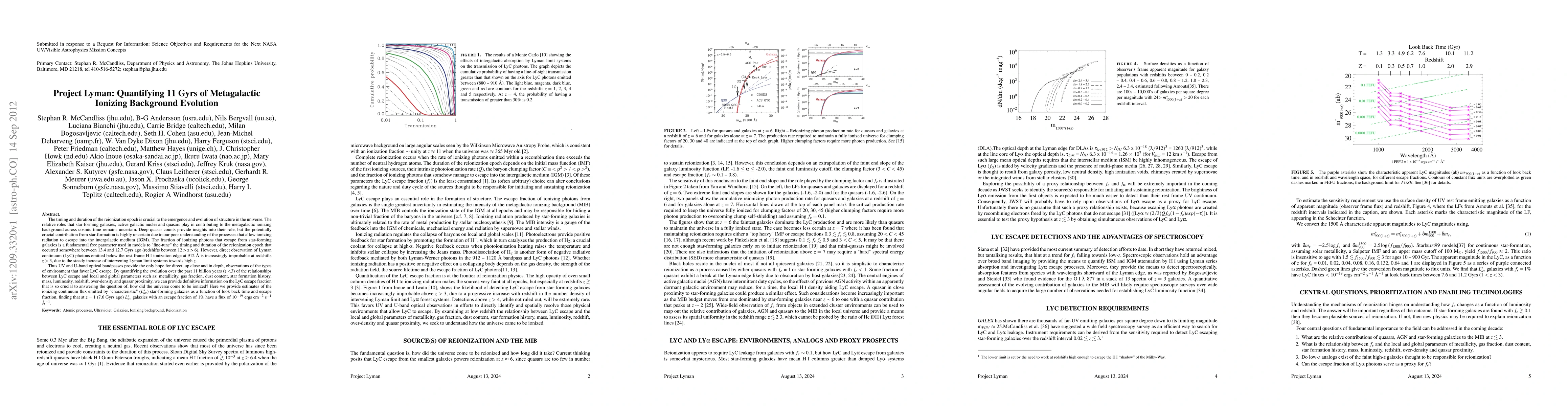 The timing and duration of the reionization epoch is crucial to the emergence and evolution of structure in the universe. The relative roles that star-forming galaxies, active galactic nuclei and quasars play in contributing to the metagalactic ionizing background across cosmic time remains uncertain. Deep quasar counts provide insights into their role, but the potentially crucial contribution from star-formation is highly uncertain due to our poor understanding of the processes that allow ionizing radiation to escape into the intergalactic medium (IGM). The fraction of ionizing photons that escape from star-forming galaxies is a fundamental free parameter used in models to "fine-tune" the timing and duration of the reionization epoch that occurred somewhere between 13.4 and 12.7 Gyrs ago (redshifts between 12 > z > 6). However, direct observation of Lyman continuum (LyC) photons emitted below the rest frame \ion{H}{1} ionization edge at 912 \AA\ is increasingly improbable at redshifts z > 3, due to the steady increase of intervening Lyman limit systems towards high z. Thus UV and U-band optical bandpasses provide the only hope for direct, up close and in depth, observations of the types of environment that favor LyC escape. By quantifying the evolution over the past 11 billion years (z < 3) of the relationships between LyC escape and local and global parameters ..., we can provide definitive information on the LyC escape fraction that is so crucial to answering the question of, how did the universe come to be ionized? Here we provide estimates of the ionizing continuum flux emitted by "characteristic" (L_{uv}^*) star-forming galaxies as a function of look back time and escape fraction, finding that at z = 1 (7.6 Gyrs ago) L_{uv}^* galaxies with an escape fraction of 1% have a flux of 10^{-19} ergs cm^{-2} s^{-1} \AA^{-1}.