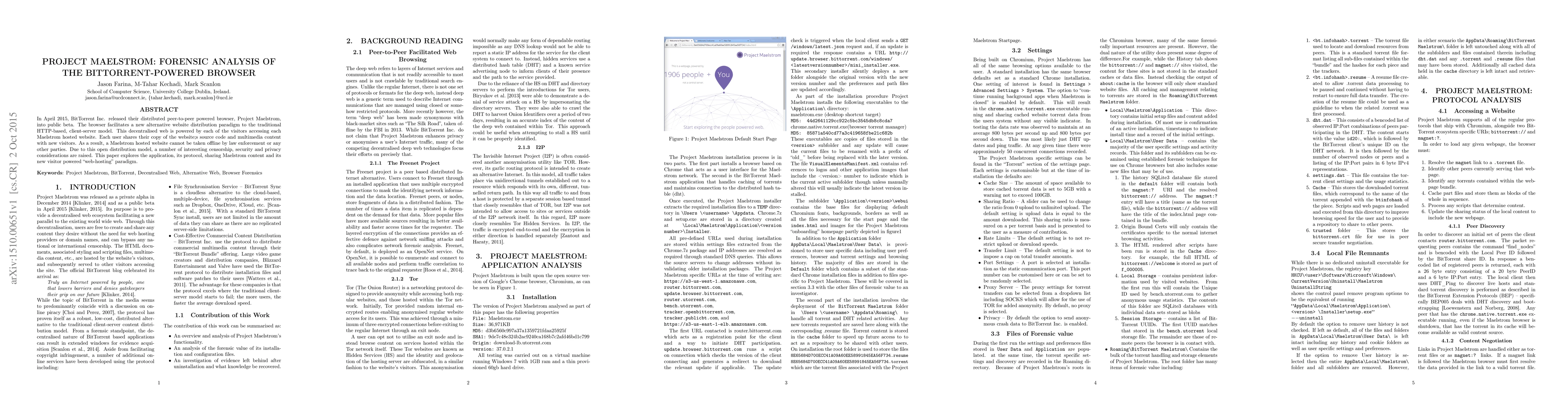 This paper investigates Project Maelstrom, a BitTorrent-powered browser that decentralizes web content distribution by having users share website files, thus making it resistant to takedown. It examines the browser's protocol, content sharing, and implications for censorship, security, and privacy.