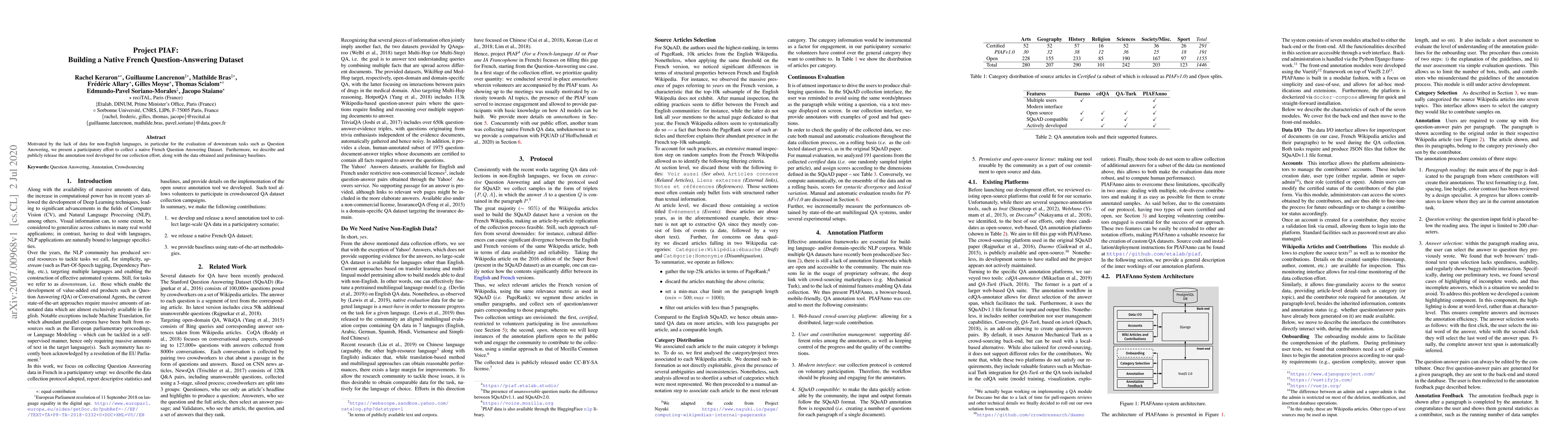 This paper presents Project PIAF, a participatory effort to create a native French Question Answering Dataset to address the scarcity of non-English language data. It also releases the developed annotation tool, along with the collected data and initial baselines for evaluation.