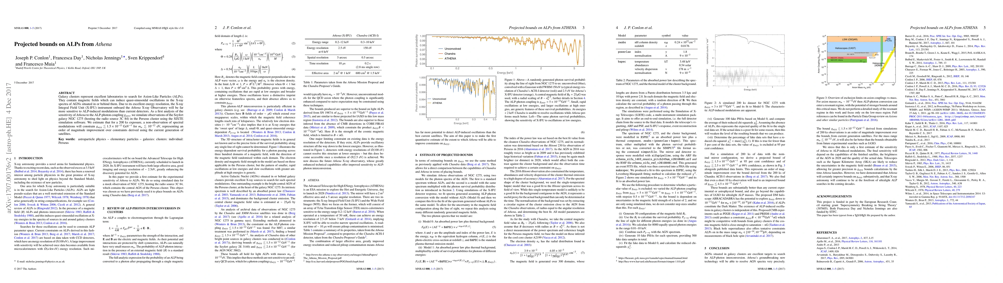 The research projects that the Athena X-ray Observatory, with its X-ray Integral Field Unit (X-IFU), will significantly enhance sensitivity to Axion-Like Particles (ALPs). By simulating observations of the Seyfert galaxy NGC1275 in the Perseus cluster, the study estimates a 200ks exposure could constrain the ALP-photon coupling $g_{agammagamma}$ to less than $1.5 imes10^{-13} m{GeV}^{-1}$ for ALP masses below $10^{-12} m{eV}$, marking an order of magnitude improvement over current constraints.