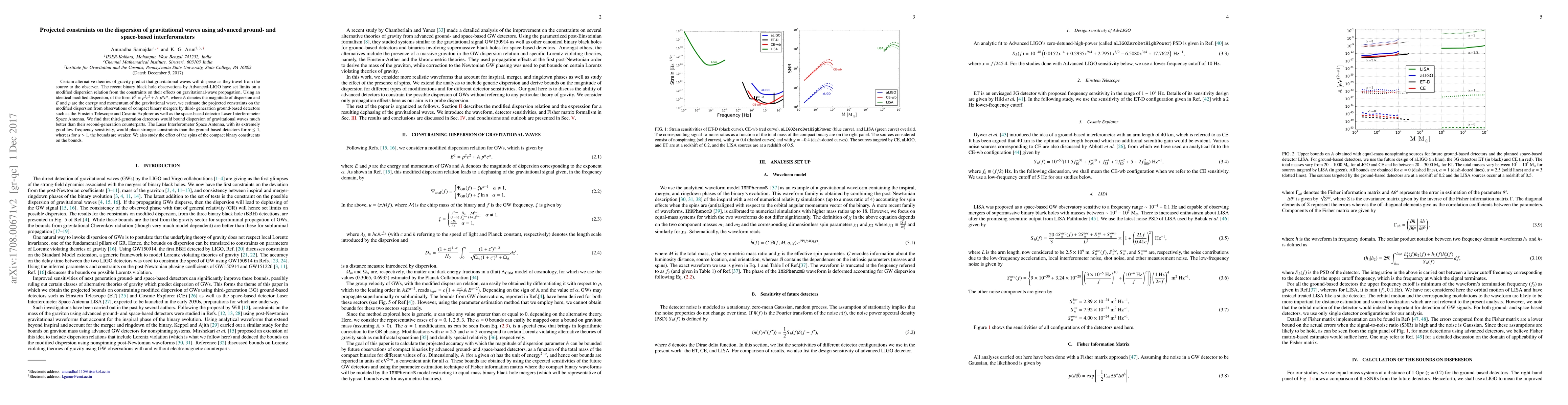 Third-generation gravitational wave detectors will more accurately constrain dispersion of gravitational waves, with space-based Laser Interferometer Space Antenna placing stronger bounds for low-frequency observations.