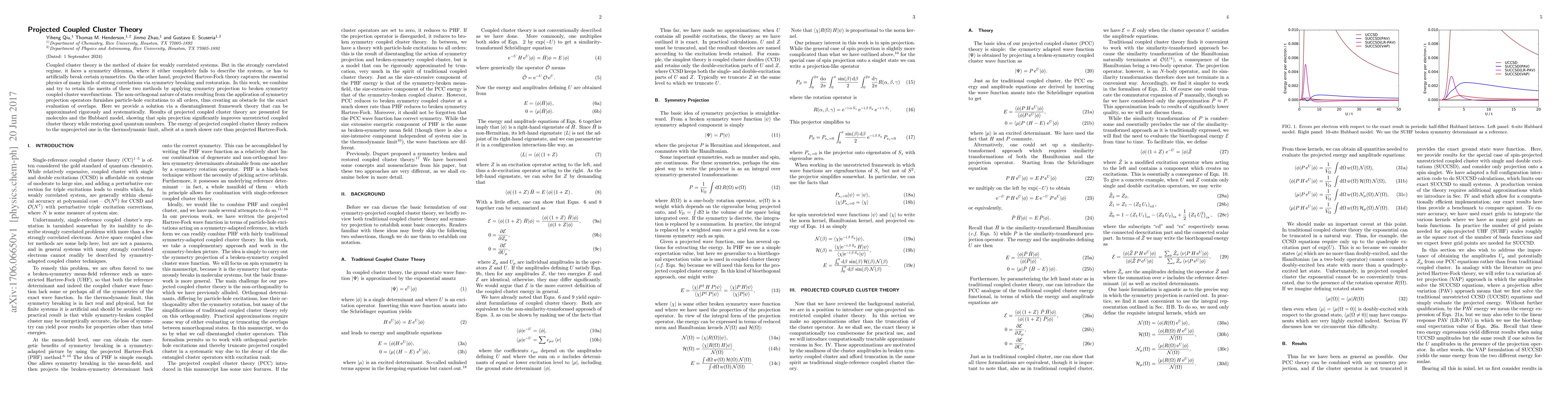 This paper proposes a projected coupled cluster theory that combines the strengths of coupled cluster and projected Hartree-Fock methods to better describe strongly correlated systems. The method uses symmetry projection to restore good quantum numbers while addressing the non-orthogonality issue, showing improved performance over unrestricted coupled cluster theory.