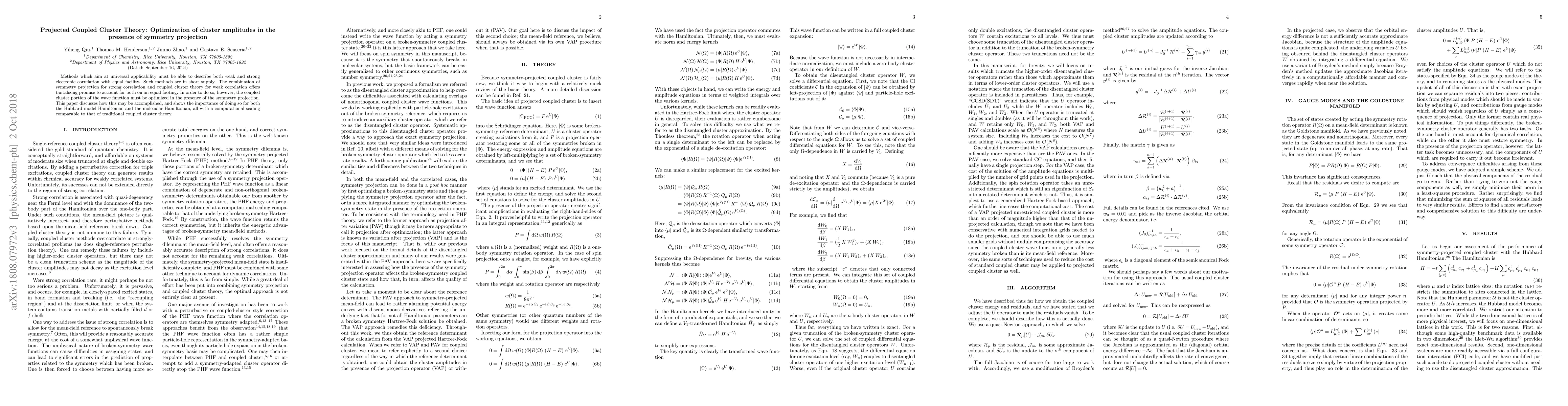 Methods which aim at universal applicability must be able to describe both weak and strong electronic correlation with equal facility. Such methods are in short supply. The combination of symmetry projection for strong correlation and coupled cluster theory for weak correlation offers tantalizing promise to account for both on an equal footing. In order to do so, however, the coupled cluster portion of the wave function must be optimized in the presence of the symmetry projection. This paper discusses how this may be accomplished, and shows the importance of doing so for both the Hubbard model Hamiltonian and the molecular Hamiltonian, all with a computational scaling comparable to that of traditional coupled cluster theory.