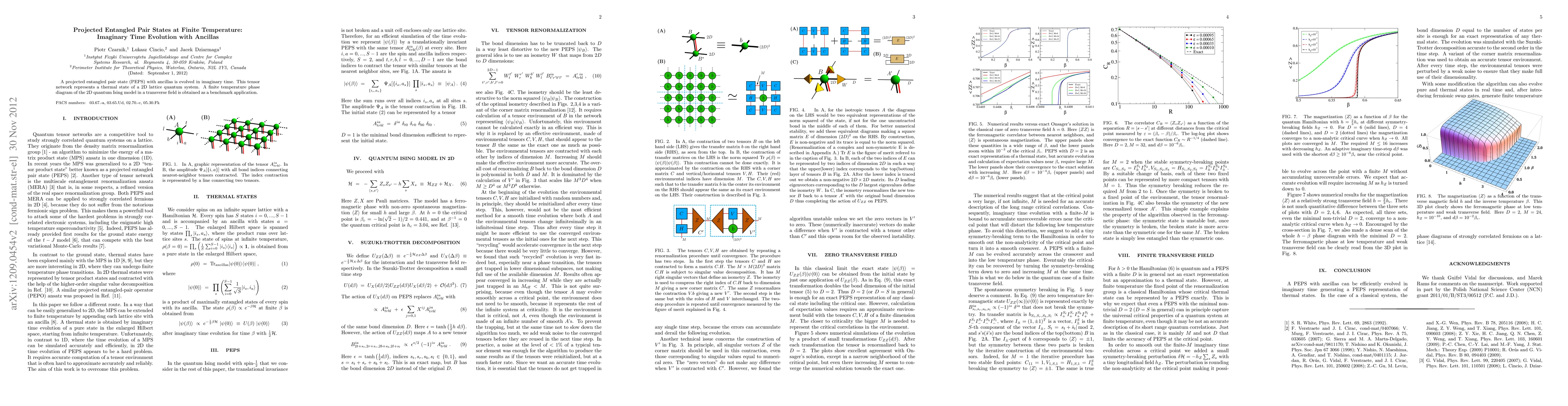 Summary: This paper explores the imaginary time evolution of projected entangled pair states (PEPS) with ancillas to represent thermal states of 2D lattice quantum systems, demonstrating its application through a finite temperature phase diagram of the 2D quantum Ising model in a transverse field.