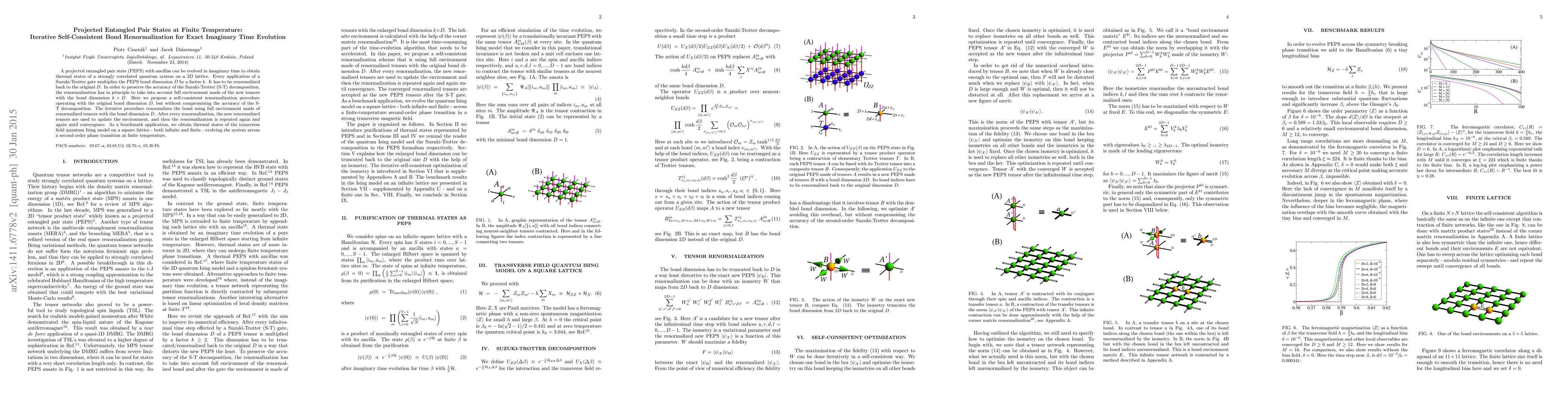 A projected entangled pair state (PEPS) with ancillas can be evolved in imaginary time to obtain thermal states of a strongly correlated quantum system on a 2D lattice. Every application of a Suzuki-Trotter gate multiplies the PEPS bond dimension $D$ by a factor $k$. It has to be renormalized back to the original $D$. In order to preserve the accuracy of the Suzuki-Trotter (S-T) decomposition, the renormalization has in principle to take into account full environment made of the new tensors with the bond dimension $k\times D$. Here we propose a self-consistent renormalization procedure operating with the original bond dimension $D$, but without compromising the accuracy of the S-T decomposition. The iterative procedure renormalizes the bond using full environment made of renormalized tensors with the bond dimension $D$. After every renormalization, the new renormalized tensors are used to update the environment, and then the renormalization is repeated again and again until convergence. As a benchmark application, we obtain thermal states of the transverse field quantum Ising model on a square lattice - both infinite and finite - evolving the system across a second-order phase transition at finite temperature.