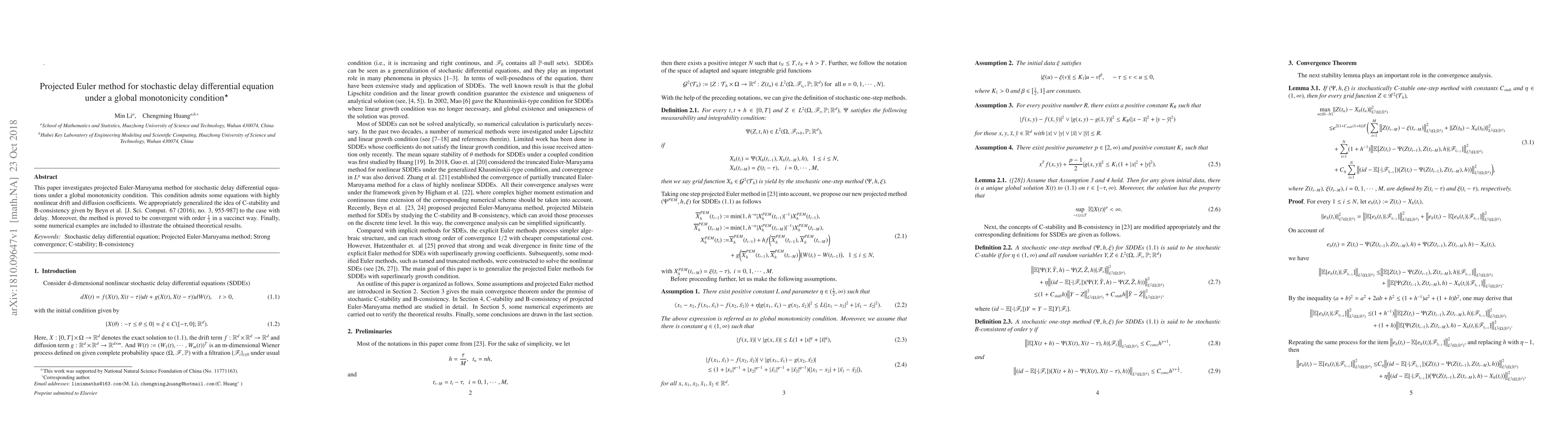 This paper explores the projected Euler-Maruyama method for stochastic delay differential equations under a global monotonicity condition, proving its convergence with order $\frac{1}{2}$ and providing numerical examples to validate the theoretical results. The study generalizes concepts of C-stability and B-consistency to accommodate highly nonlinear drift and diffusion coefficients.