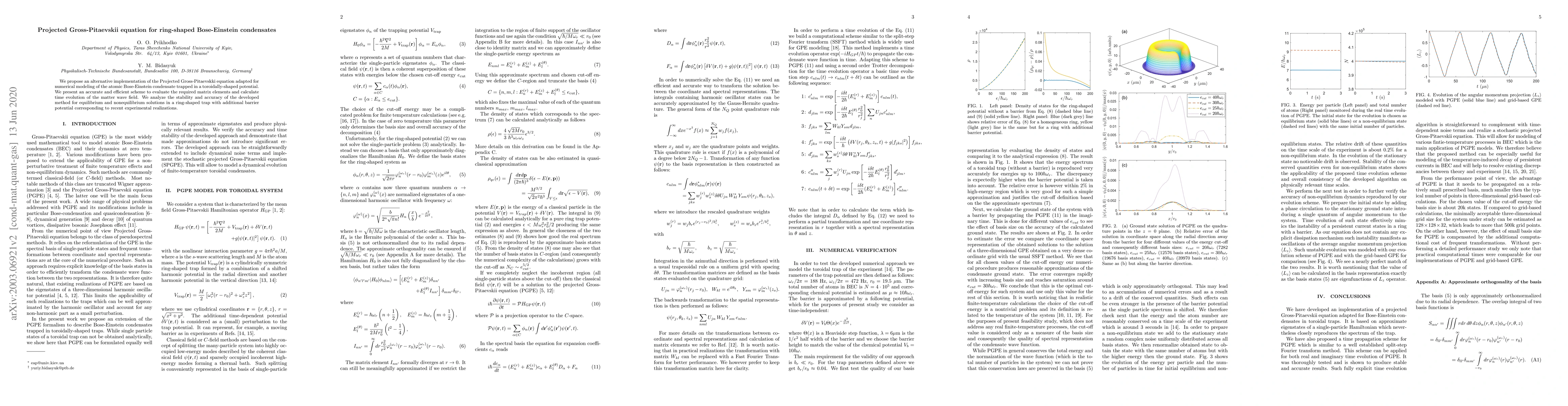 This paper proposes a numerical method for modeling a toroidally-shaped Bose-Einstein condensate using a modified Projected Gross-Pitaevskii equation, focusing on evaluating matrix elements and analyzing stability and accuracy for both equilibrium and nonequilibrium states.