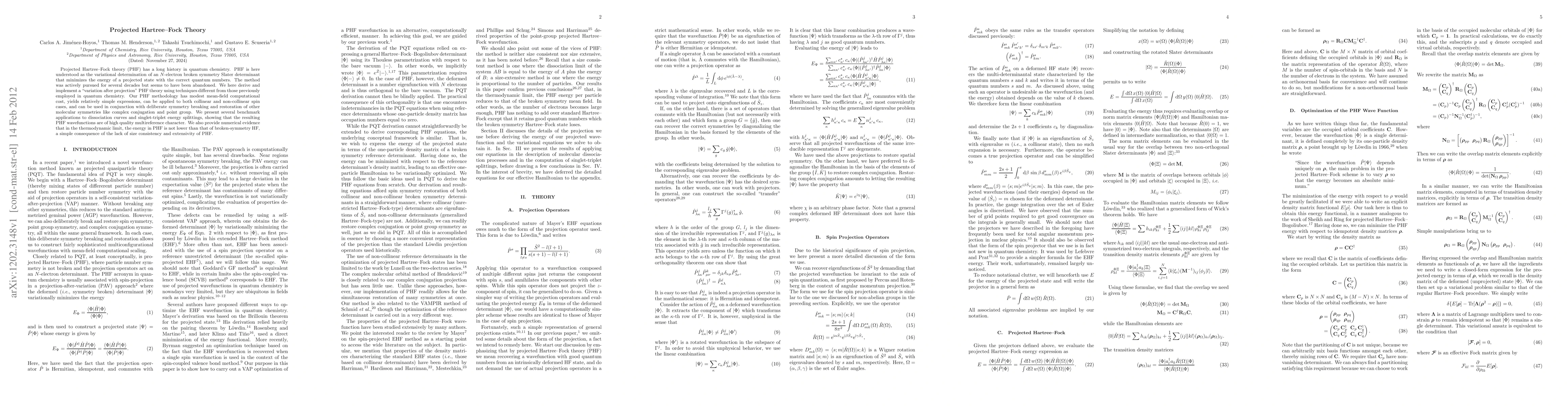 This paper reintroduces Projected Hartree-Fock (PHF) theory, presenting a new "variation after projection" approach with lower computational costs and broader applicability. The authors demonstrate high-quality multireference character in benchmark applications and show that PHF energy is not lower than broken-symmetry HF in the thermodynamic limit.