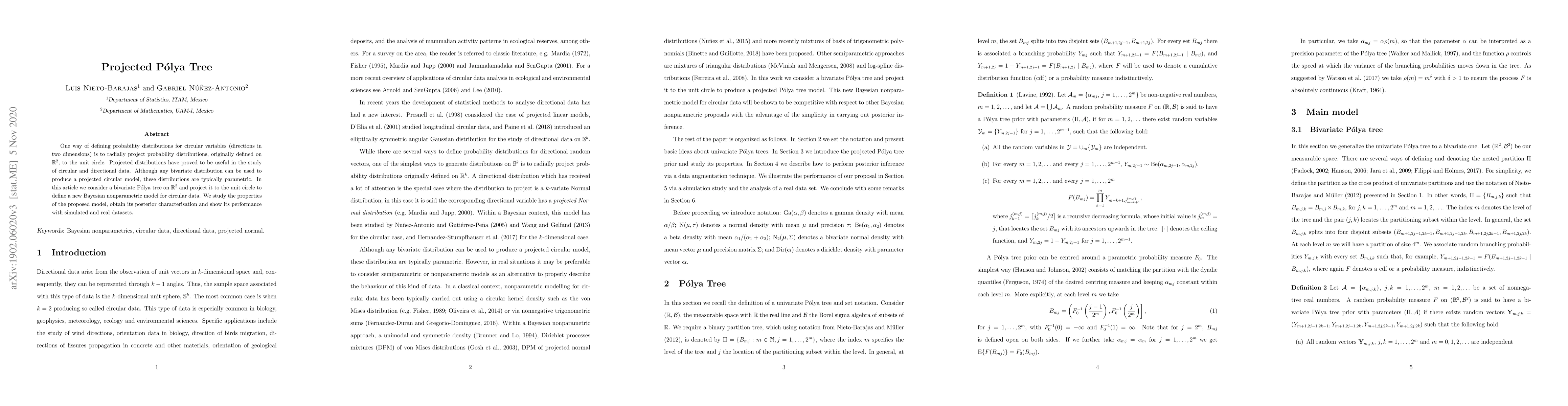 The paper introduces a novel Bayesian nonparametric model for circular data based on the projection of a bivariate Pólya tree onto the unit circle, offering smooth density estimates and efficient posterior inference via MCMC methods.