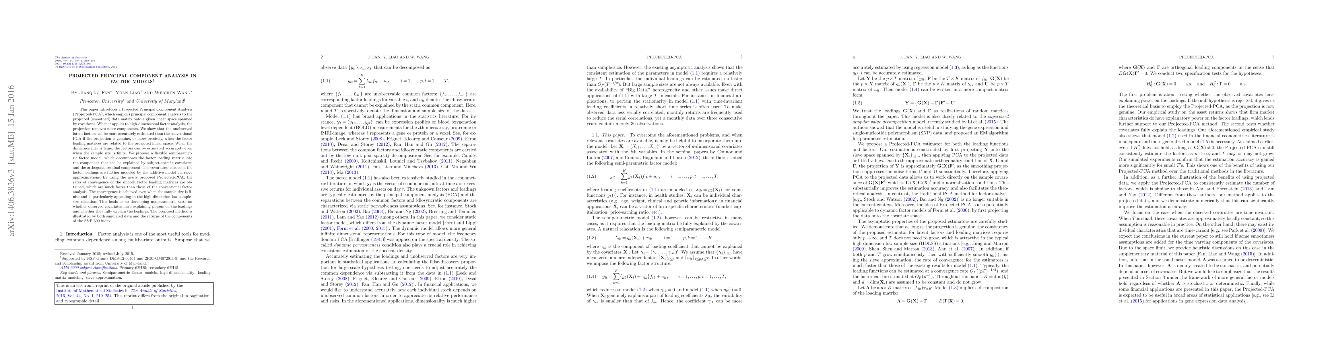 This paper introduces Projected Principal Component Analysis (Projected-PCA) to enhance factor analysis in high-dimensional settings by projecting data onto a linear space defined by covariates, improving the accuracy of latent factor estimation. The proposed semiparametric factor model decomposes factor loadings into covariate-explained and residual components, achieving faster convergence rates compared to conventional PCA, especially in high-dimension-low-sample-size scenarios.