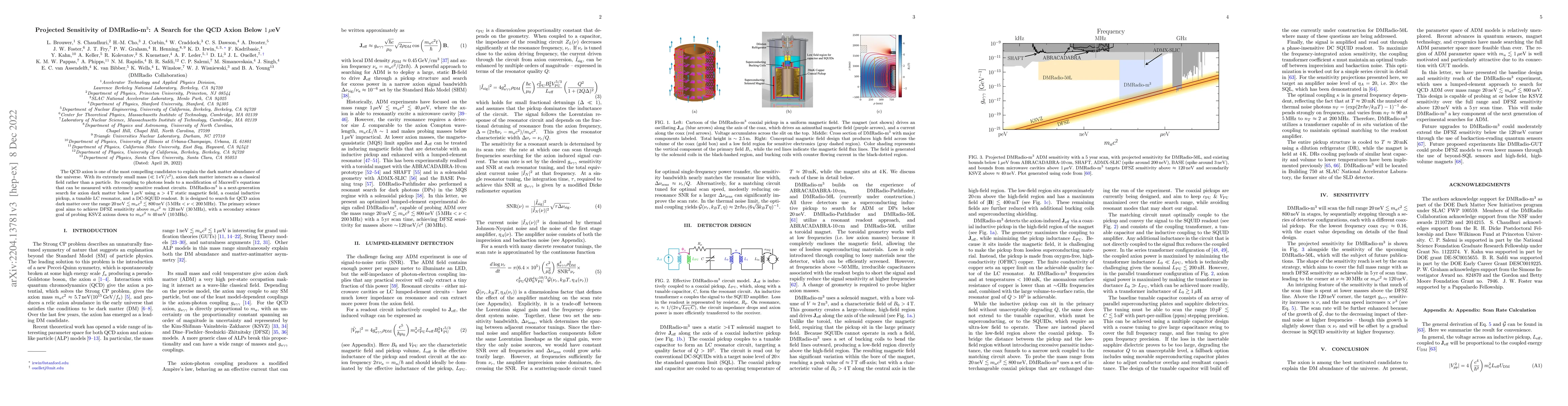 The paper discusses the DMRadio-m$^3$ project, a cutting-edge search for QCD axion dark matter with masses below $1\,\mu$eV, utilizing advanced readout circuits and a strong magnetic field. The project aims to achieve sensitivity to DFSZ axions above $120$ neV and probe KSVZ axions down to $40$ neV.