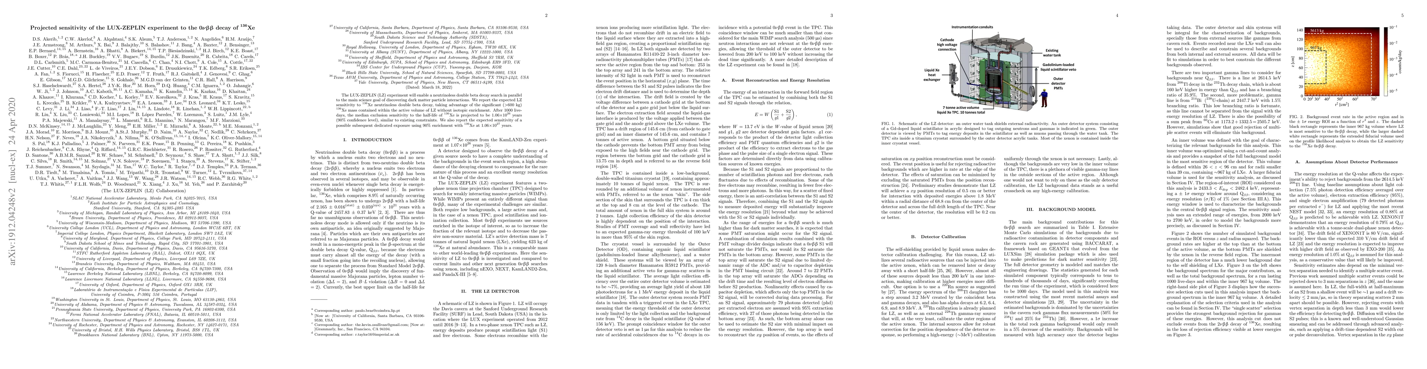 The LUX-ZEPLIN experiment is expected to achieve sensitivity similar to existing constraints for detecting $^{136}$Xe neutrinoless double beta decay after 1000 live-days, with improved sensitivity possible with future dedicated exposure.