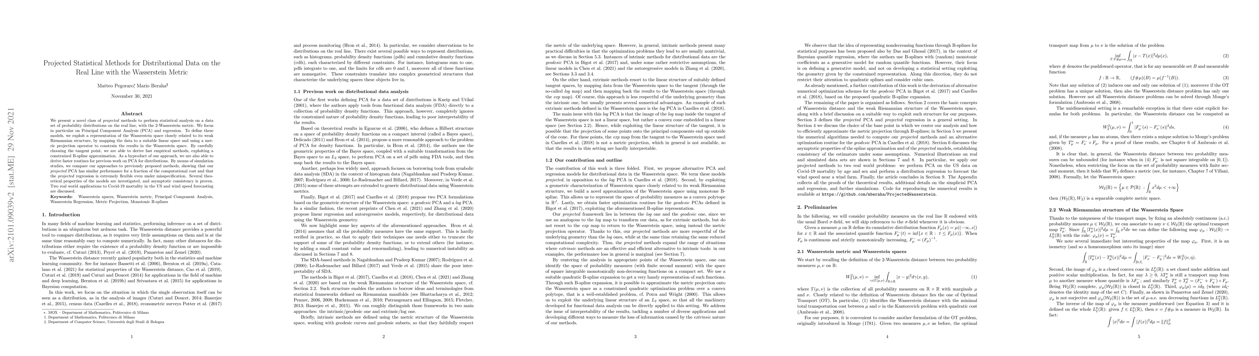 A new method for statistical analysis on probability distributions on the real line using the Wasserstein metric provides faster computational methods with similar performance to existing approaches, and has been applied to Covid-19 mortality data and wind speed forecasting.