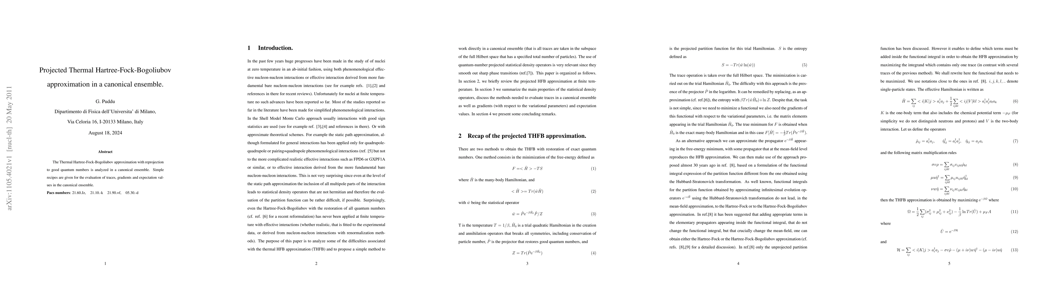 This paper analyzes the Thermal Hartree-Fock-Bogoliubov approximation within a canonical ensemble, providing methods for calculating traces, gradients, and expectation values in this context. Simple recipes are offered for these evaluations.