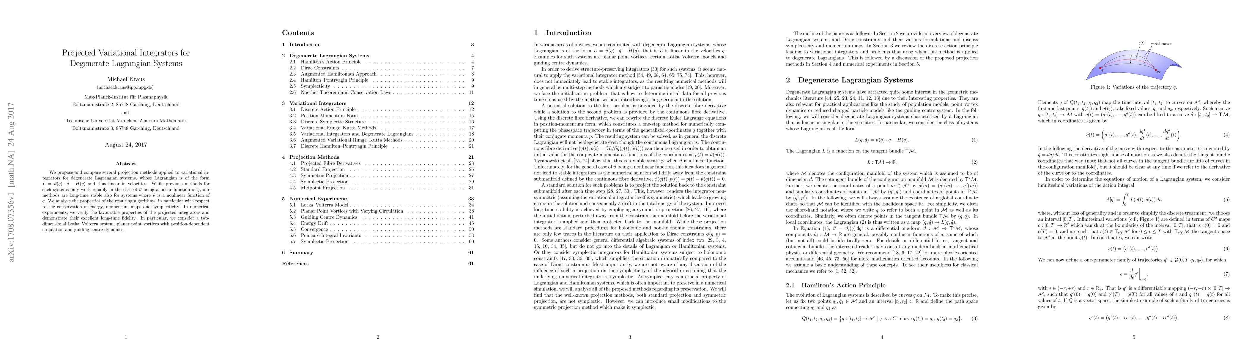 This paper introduces projection methods for variational integrators applied to degenerate Lagrangian systems, which are stable over long time periods even when the velocity-dependent term is nonlinear. The proposed methods are analyzed for energy conservation, momentum maps, and symplecticity, and demonstrated to maintain excellent long-time fidelity through numerical experiments on systems like the Lotka-Volterra model and planar point vortices.