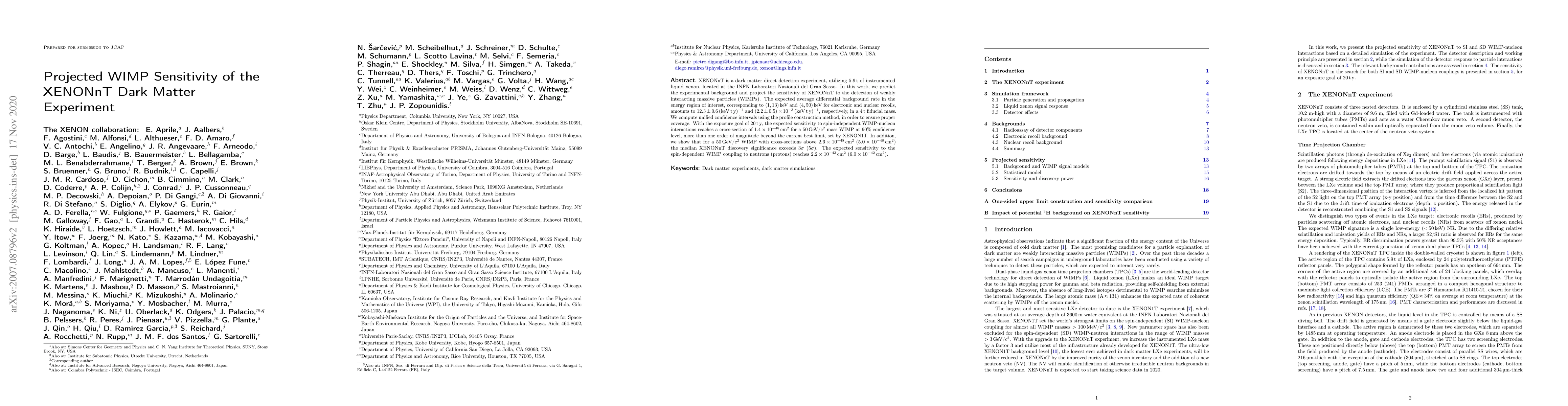 The XENONnT experiment projects unprecedented sensitivity to weakly interacting massive particles (WIMPs) with a cross-section limit of $1.4\times10^{-48}$ cm$^2$ for a 50 GeV/c$^2$ WIMP, surpassing current limits by an order of magnitude. The experiment also achieves significant discovery potential for WIMPs with higher cross-sections.