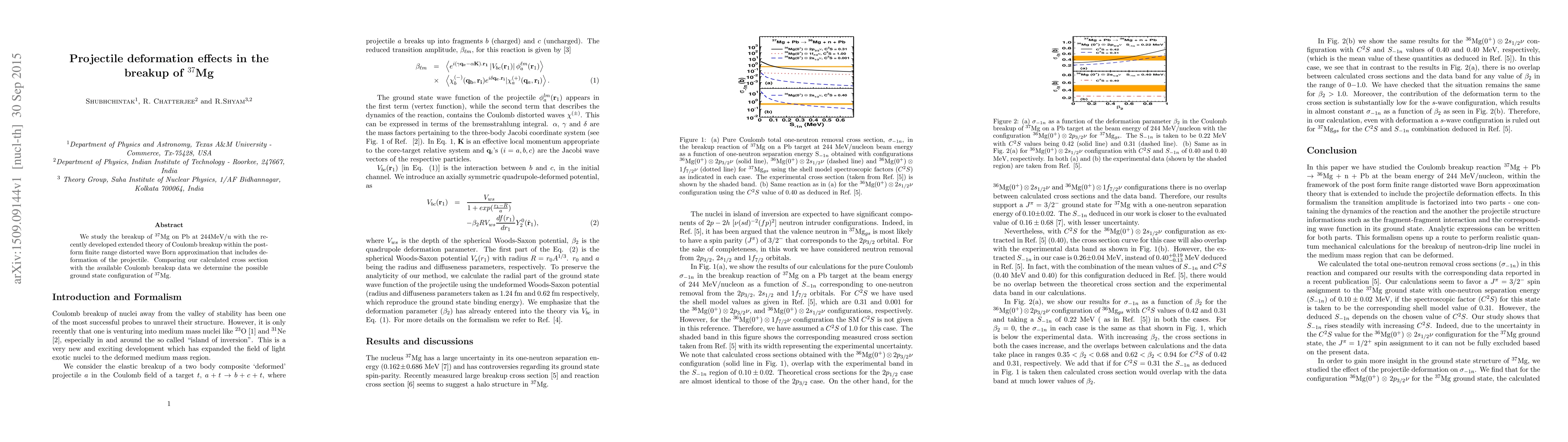 This research investigates the breakup of $^{37}$Mg on Pb at 244 MeV/u using an extended theory of Coulomb breakup that accounts for projectile deformation, aiming to determine the ground state configuration of $^{37}$Mg by comparing calculated cross sections with experimental data.