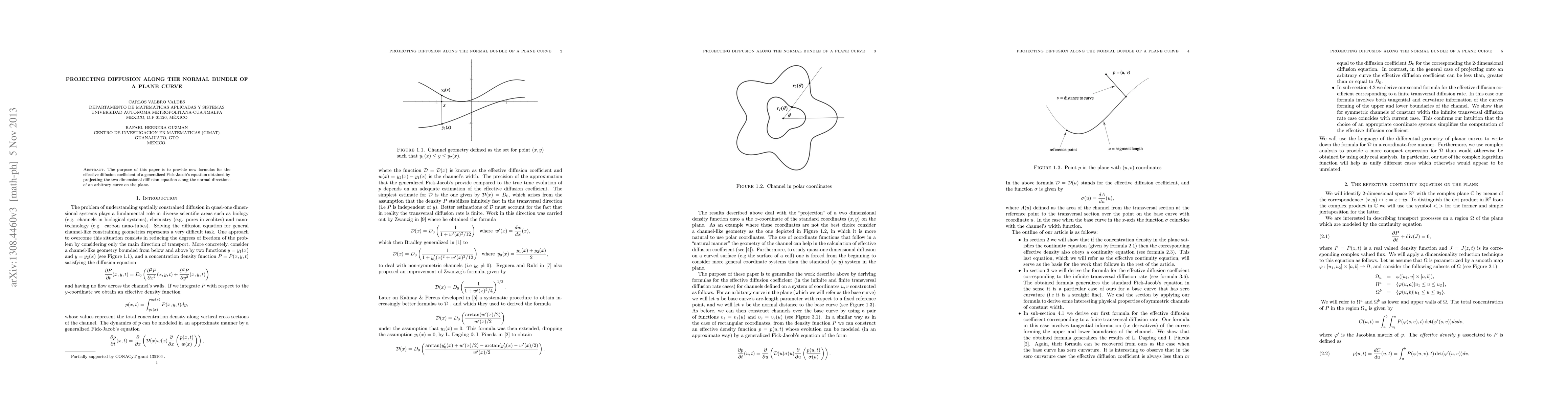 The purpose of this paper is to provide new formulas for the estimation of the effective diffusion coefficient of an equation of Fick-Jacob's type obtained by projecting the two-dimensional diffusion equation along the normal direction of an arbitrary plane curve.