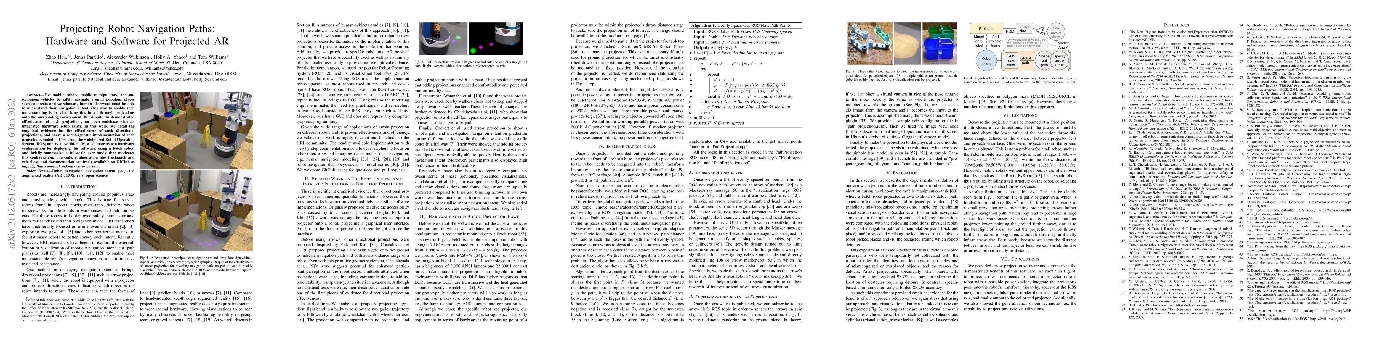 This paper presents an open-source C++ implementation using ROS and rviz for projecting navigation paths of robots onto their environment, aiding human understanding. It also provides a hardware setup using a Fetch robot, backed by a user study, and offers the code and configuration files on GitHub.