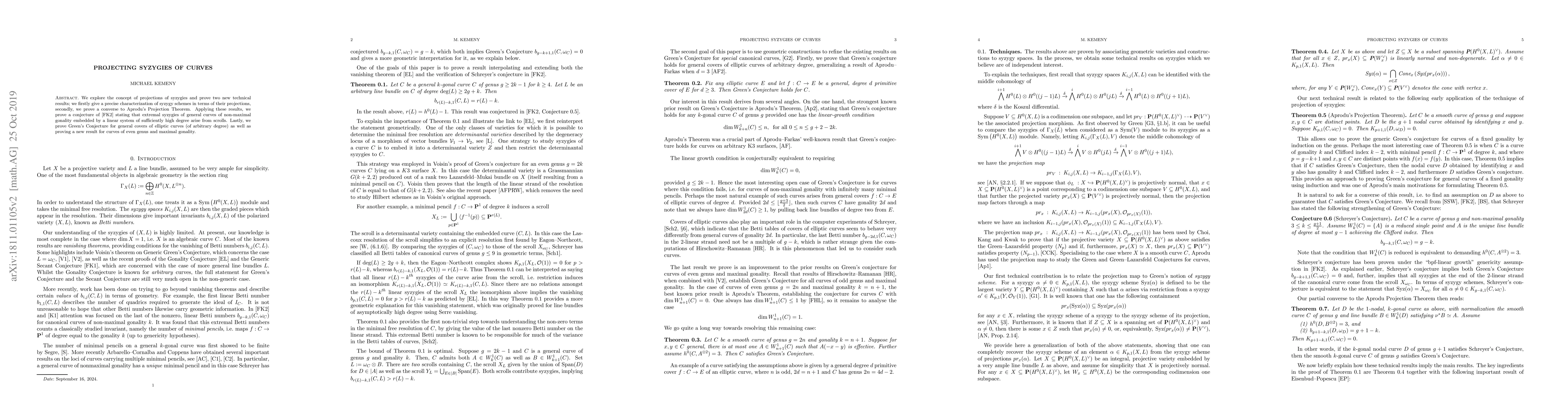 We explore the concept of projections of syzygies and prove two new technical results; we firstly give a precise characterization of syzygy schemes in terms of their projections, secondly, we prove a converse to Aprodu's Projection Theorem. Applying these results, we prove that extremal syzygies of general curves of non-maximal gonality embedded by a linear system of sufficiently high degree arise from scrolls. Lastly, we prove Green's Conjecture for general covers of elliptic curves (of arbitrary degree) as well as proving a new result for curves of even genus and maximal gonality.