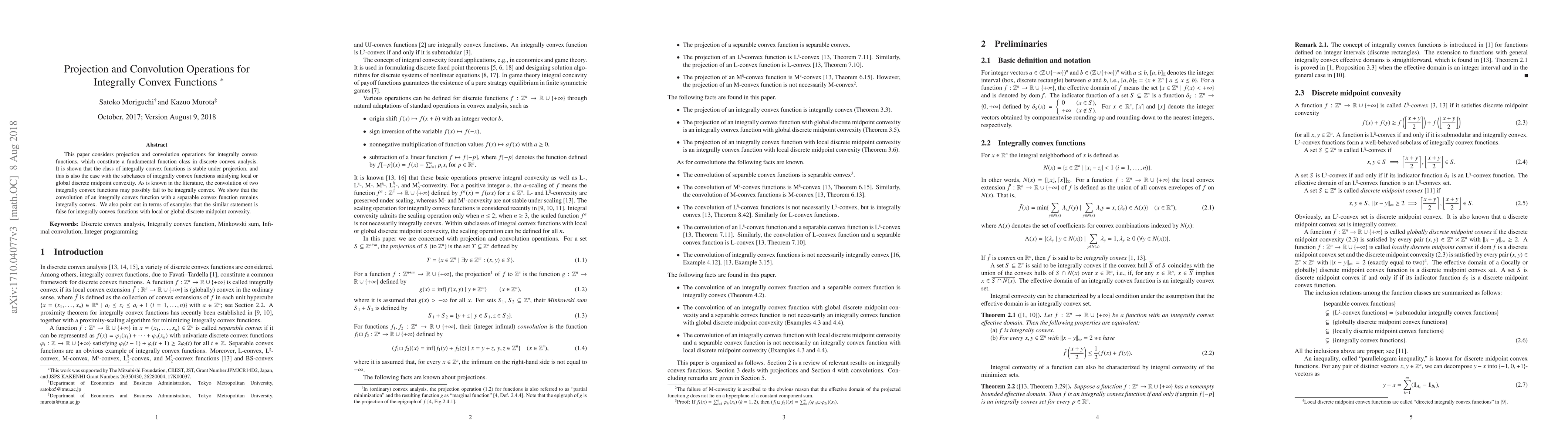 This paper investigates projection and convolution operations for integrally convex functions, demonstrating stability under projection and showing that convolution with a separable convex function preserves integral convexity, while highlighting exceptions for functions with discrete midpoint convexity.