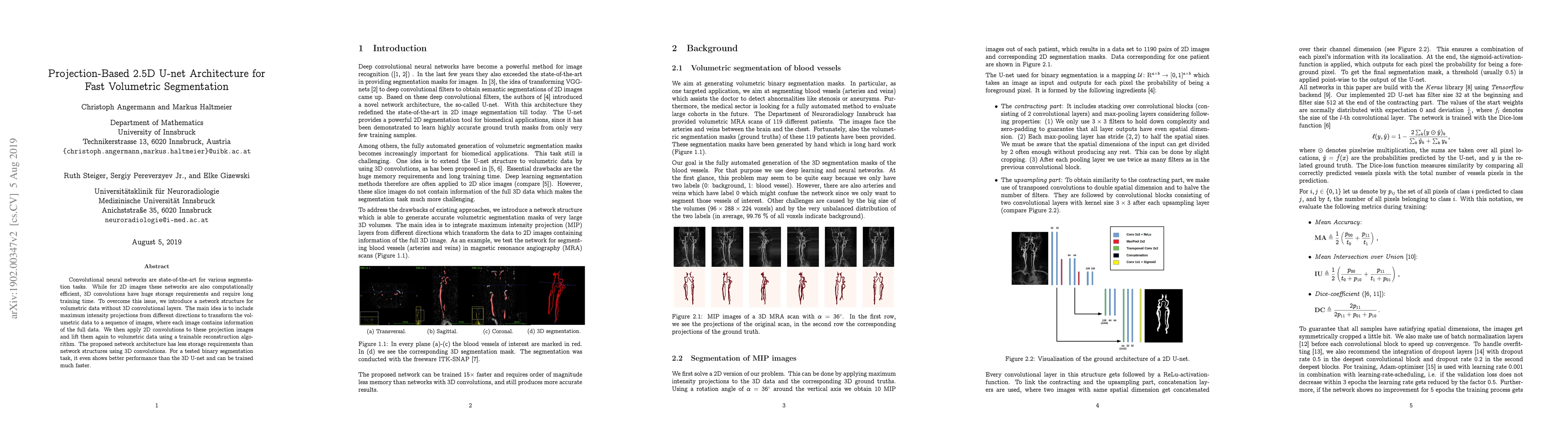 This paper proposes a new 2D U-net architecture for fast volumetric segmentation that uses maximum intensity projections to reduce storage requirements and training time.