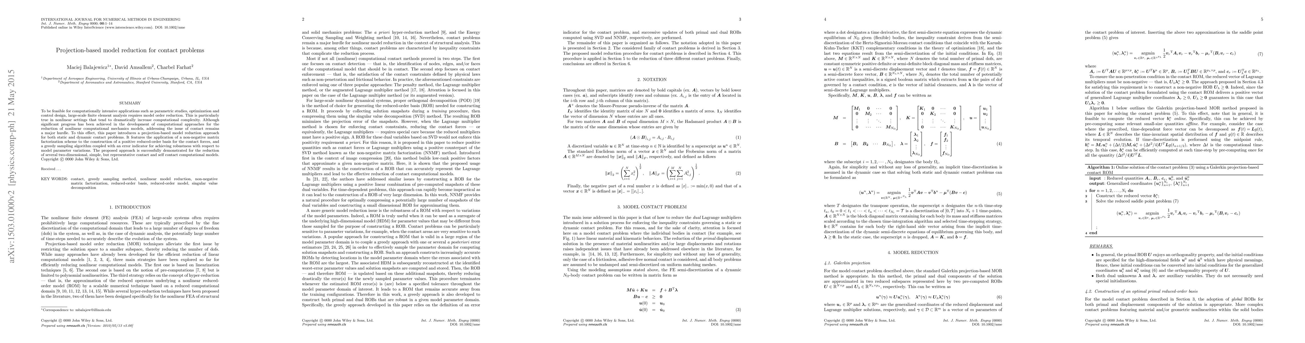 This paper introduces a projection-based model reduction approach for contact problems in nonlinear settings, providing a robust method for reducing computational complexity while maintaining accuracy.