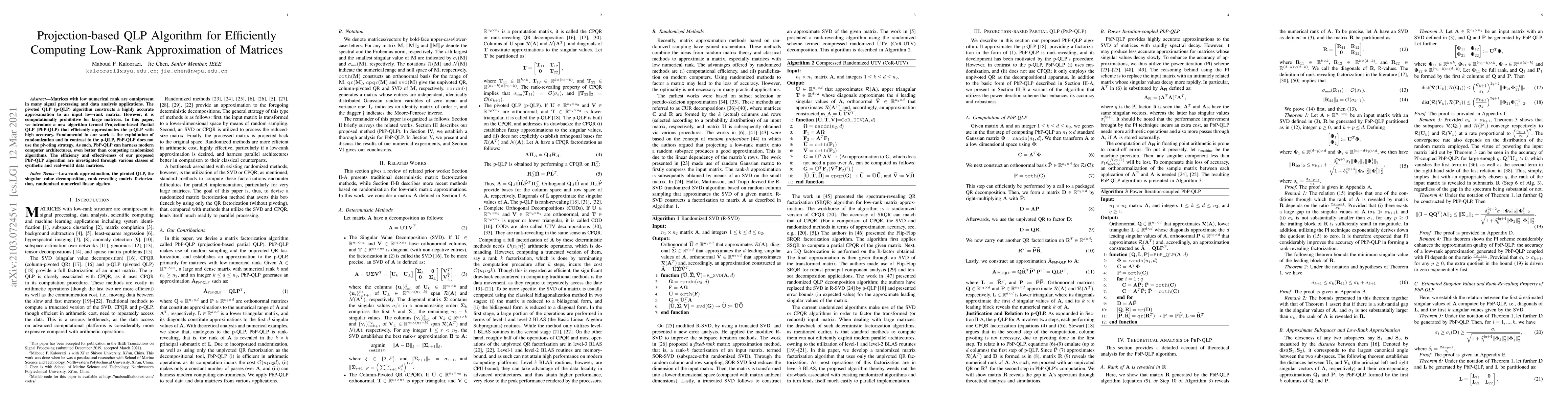 This paper introduces the Projection-based Partial QLP (PbP-QLP) algorithm to efficiently compute low-rank approximations of large matrices, leveraging randomization instead of pivoting to outperform existing methods on modern computer architectures. The PbP-QLP algorithm's effectiveness is validated using synthetic and real-world data matrices.