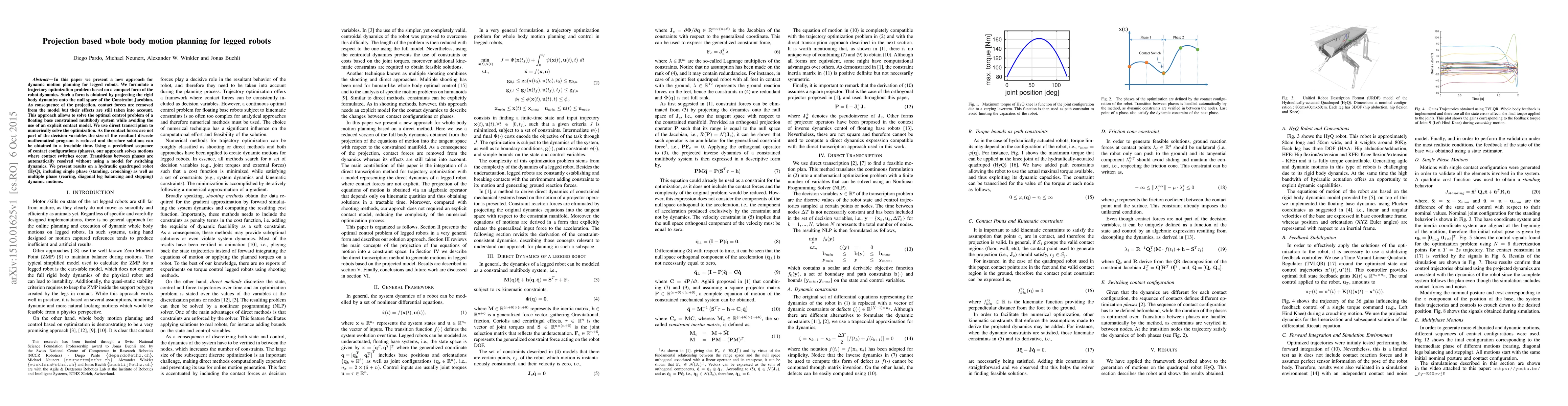 This paper introduces a projection-based method for dynamic motion planning in legged robots, optimizing robot dynamics by projecting rigid body dynamics onto the null space of the Constraint Jacobian, thus simplifying the control problem and enabling efficient solutions for complex motions involving contact switches. Results demonstrate successful execution on a hydraulic quadruped robot.