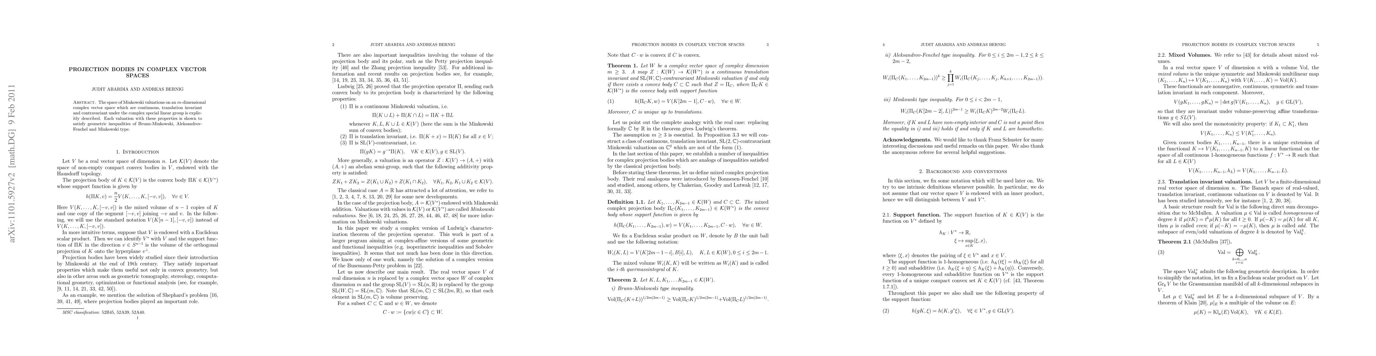 This paper describes the space of specific Minkowski valuations in complex vector spaces, showing each adheres to Brunn-Minkowski, Aleksandrov-Fenchel, and Minkowski-type inequalities. It highlights continuity, translation invariance, and contravariance under complex special linear group as key properties.