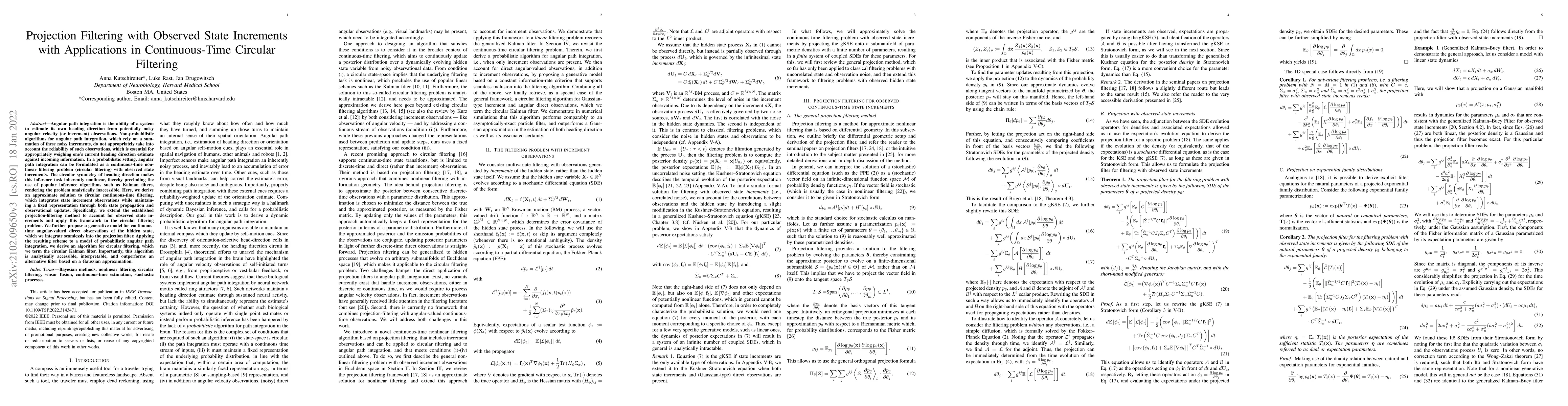 The paper derives a continuous-time nonlinear filtering method with observed state increments using a projection filtering approach, applied to probabilistic angular path integration. It extends this to include quasi-continuous-time von Mises-valued direct observations, formulating a circular filtering algorithm that handles both increment and direct angular observations.